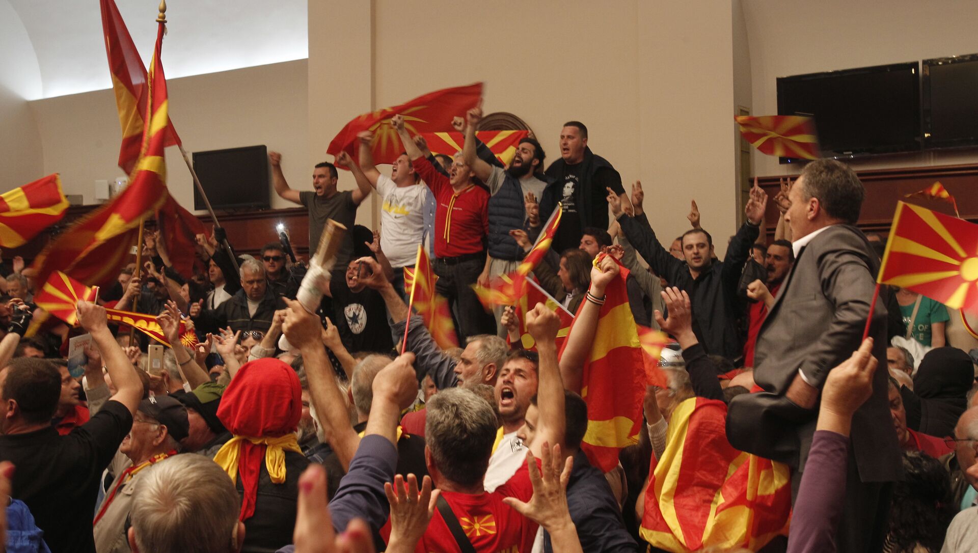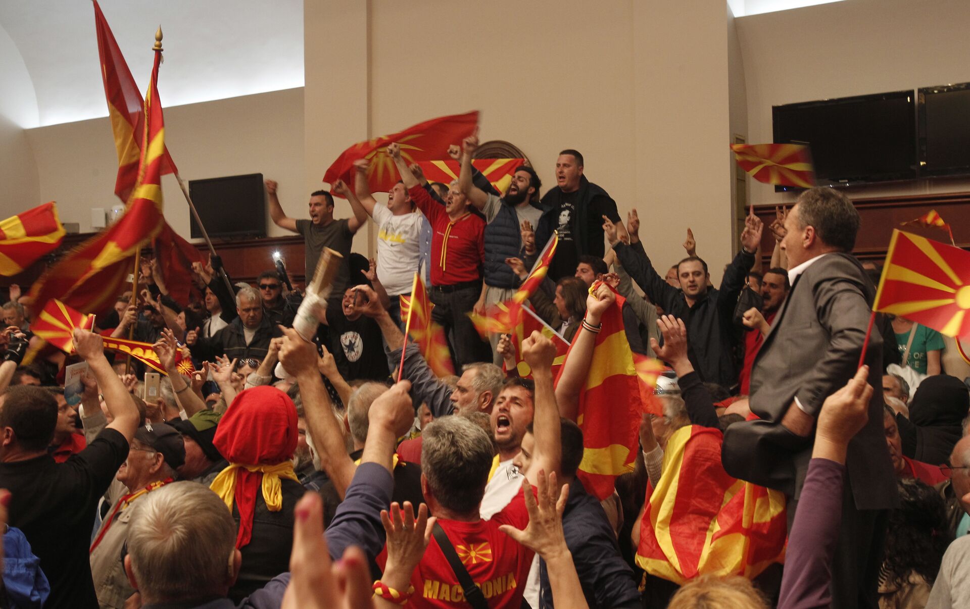 La elección de Talat Xhaferi, de la minoría albanesa, como presidente del Parlamento de Macedonia provocó protestas multitudinarias en la capital, Skopje, y ataques de los manifestantes contra la sede parlamentaria.