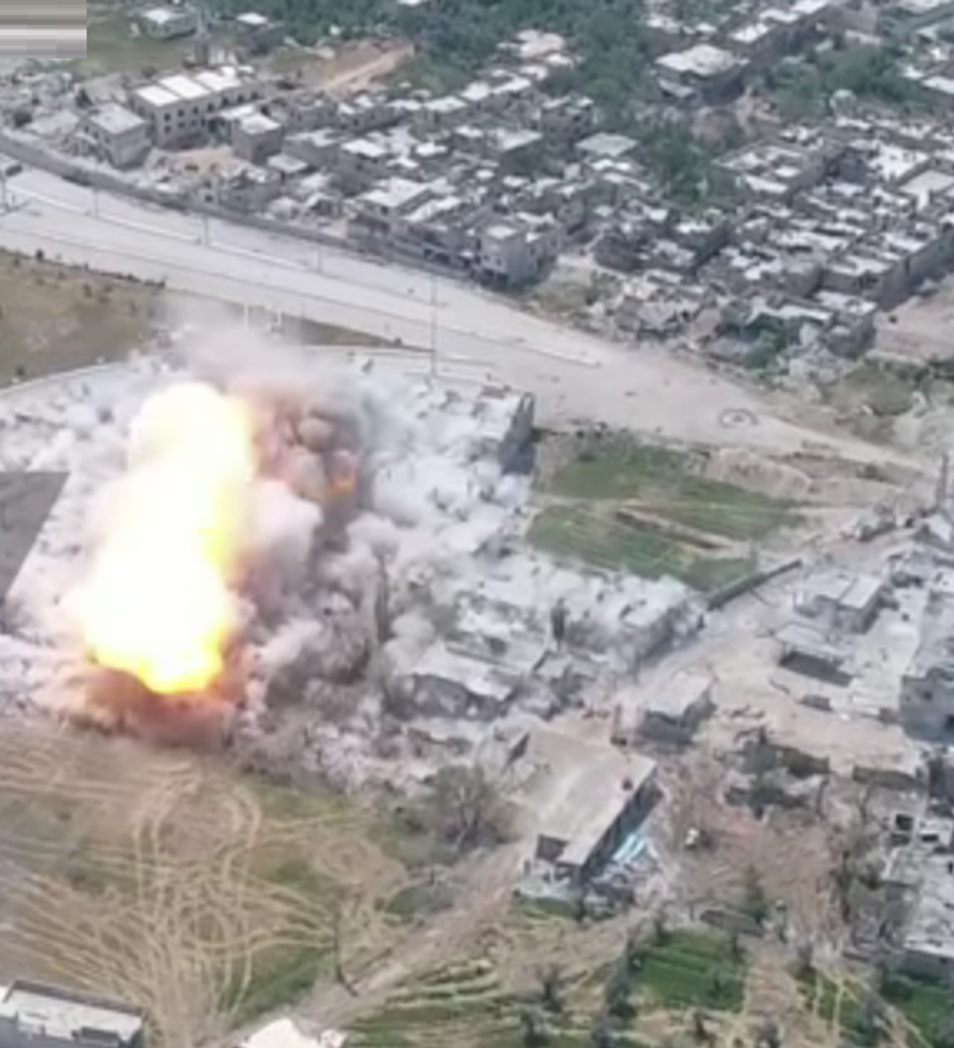 Estas imágenes, de la insólita máquina en acción, fueron grabadas desde el aire por un dron. En la grabación se puede apreciar cómo una potente explosión sacude casi todo el barrio situado en las inmediaciones de Damasco.