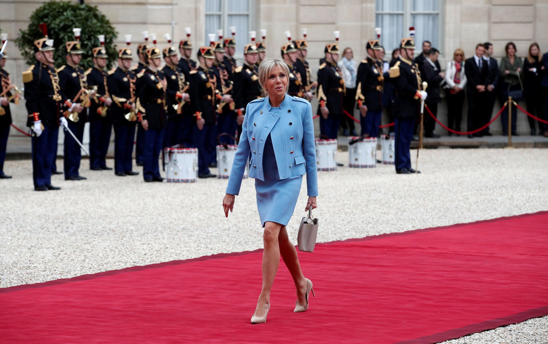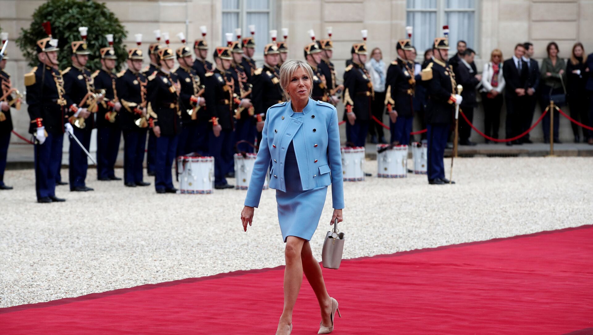 La elección cromática de Brigitte llevó a muchos internautas a pensar que la nueva primera dama gala había adoptado el 'outfit' de su homóloga estadounidense, Melania Trump, quien en su momento se decantó por un vestido monocolor de Ralph Lauren, también azul.