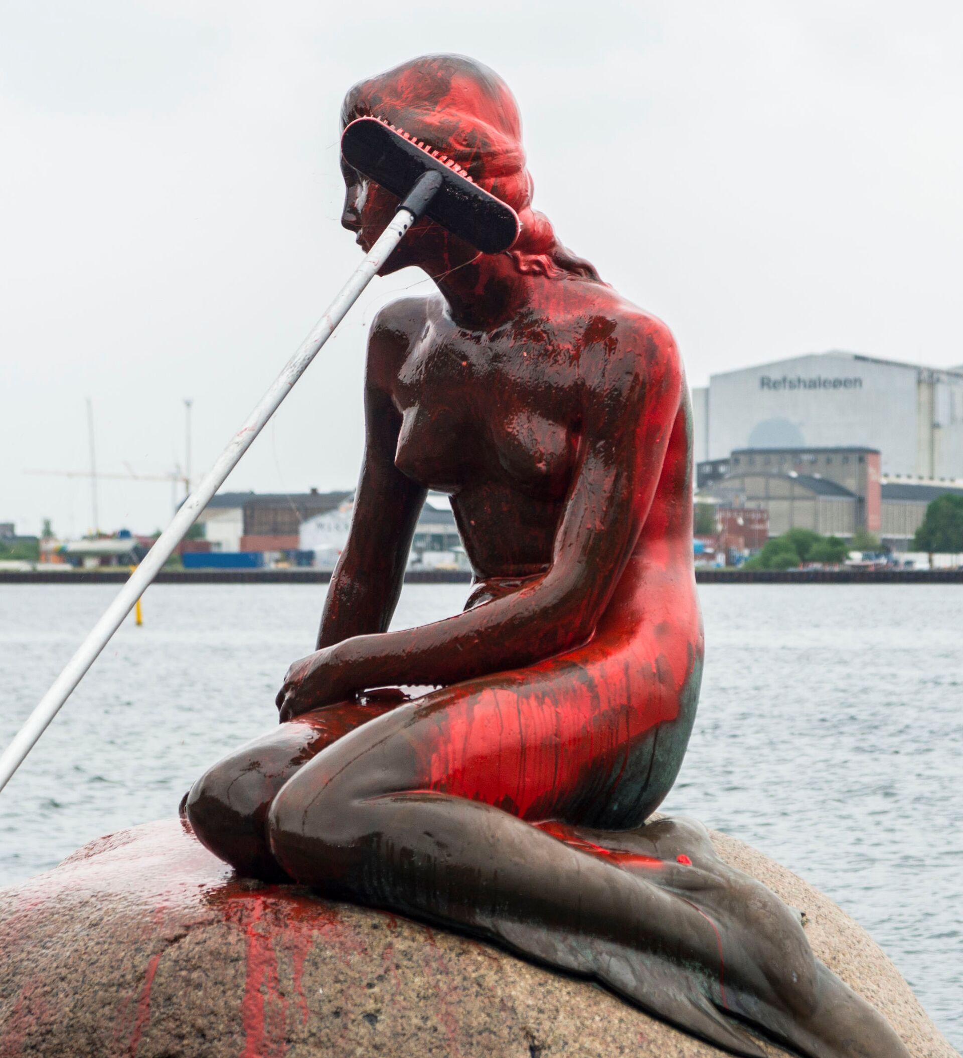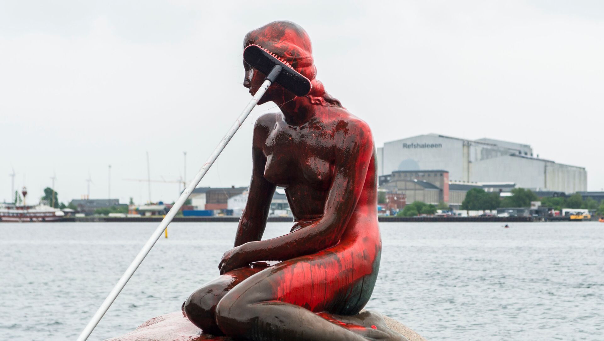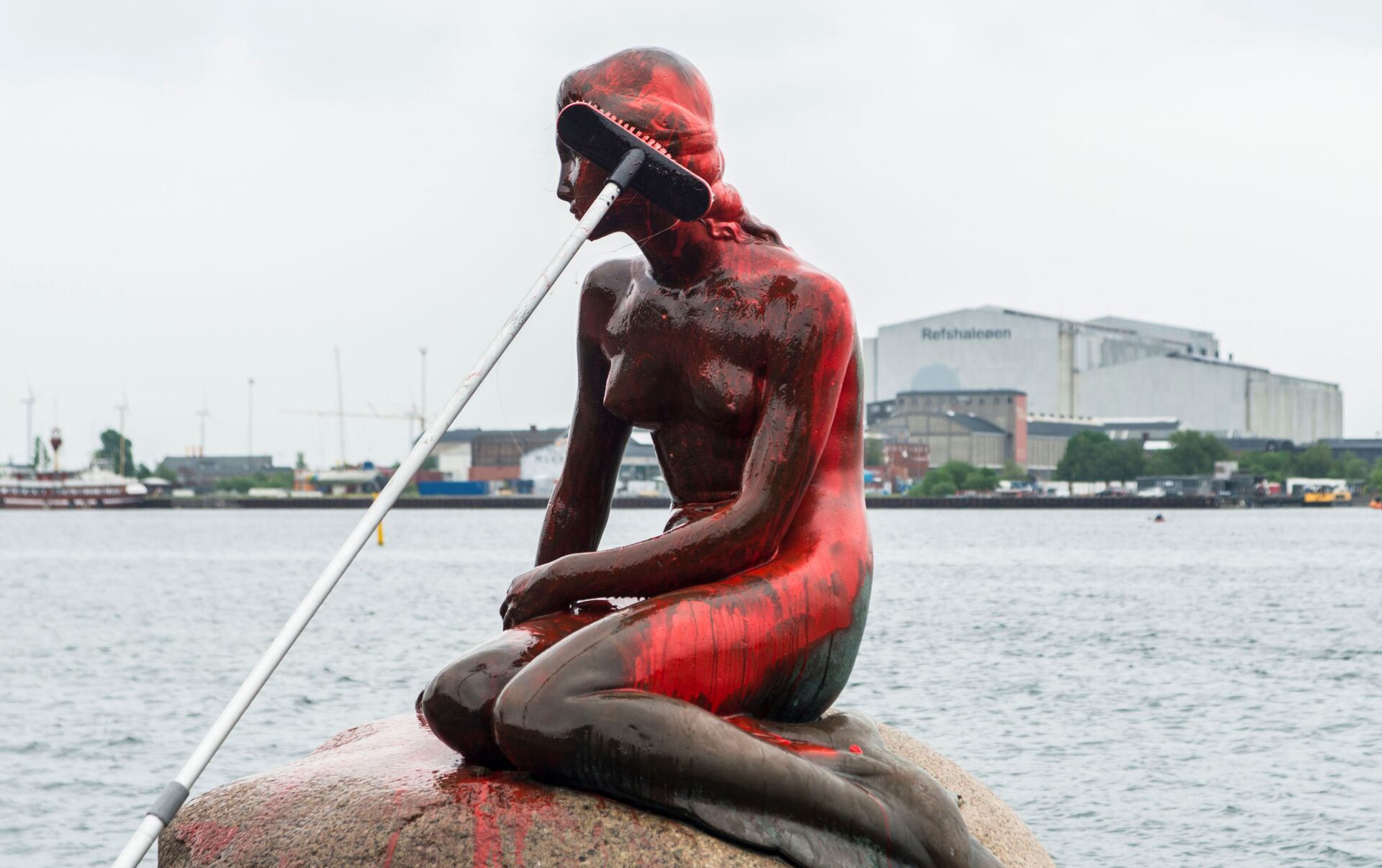 "Nos fuimos allí y, en efecto, la Sirenita estaba pintada de rojo, no sabemos cuánto tiempo lleva así, probablemente ocurrió de la noche a la mañana", dijo.
