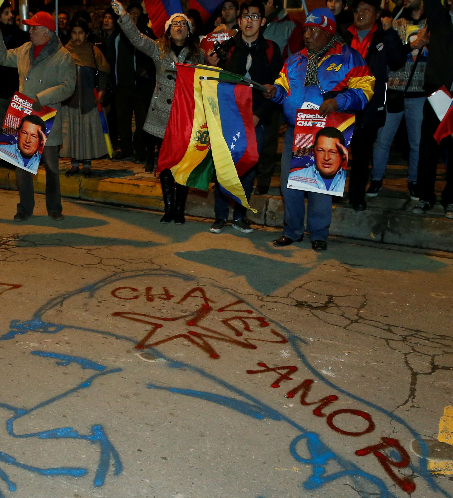 Las manifestaciones —a favor y en contra de la revolución venezolana— se desarrollaron bajo vigilancia policial y en medio de insultos entre los bandos que se apostaron frente a la legación diplomática venezolana ubicada en la zona sur de La Paz.