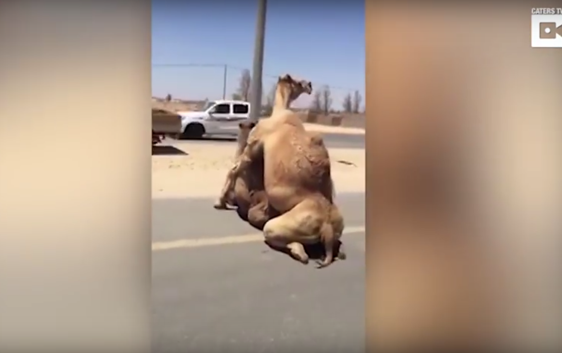 En la grabación, hecha por un joven británico desde su vehículo, se puede apreciar cómo los dos animales copulan a mitad de una autopista, llamando la atención de los perplejos automovilistas.