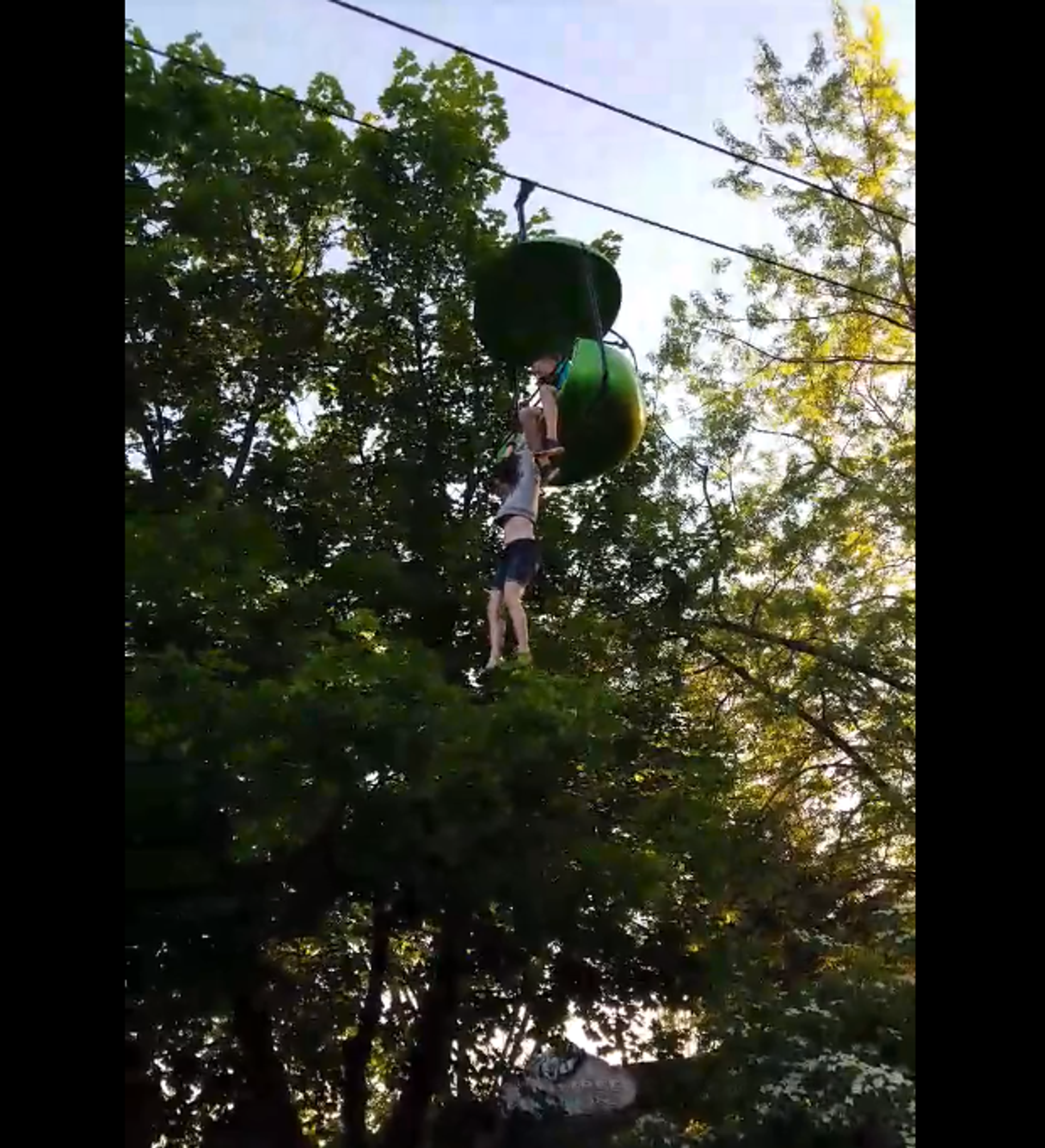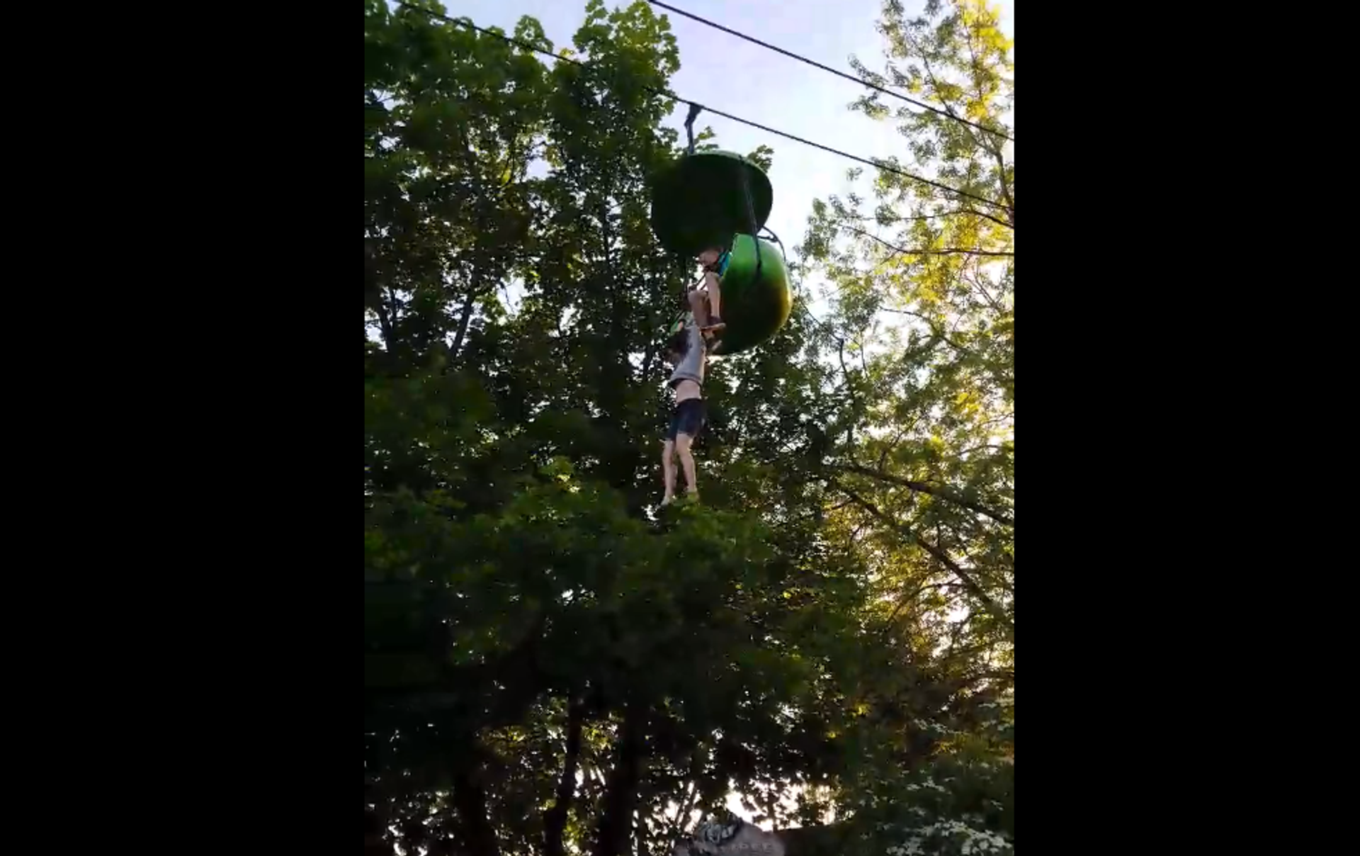 La pequeña se quedó colgando del teleférico gritando frente a decenas de personas bajo sus pies tratando de calcular donde iría a parar. Al caer, la menor chocó contra las ramas de un árbol y acabó desplomándose sobre los brazos de las personas y empleados del parque que se encontraban bajo sus pies.