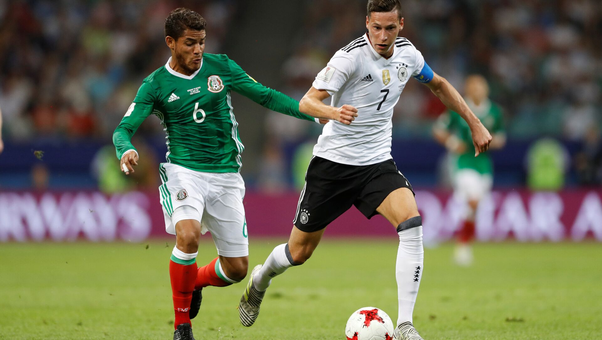 La joven selección alemana pasó por encima de los hombres de Juan Carlos Osorio y los dos tempranos goles del jugador del Shalke 04 Leon Goretzka —en los minutos 6 y 9—fueron imposibles de superar por el combinado mexicano. Timo Werner marcó el tercero para los alemanes en el segundo tiempo y Amin Younes, ya en el descuento, cerró la goleada.