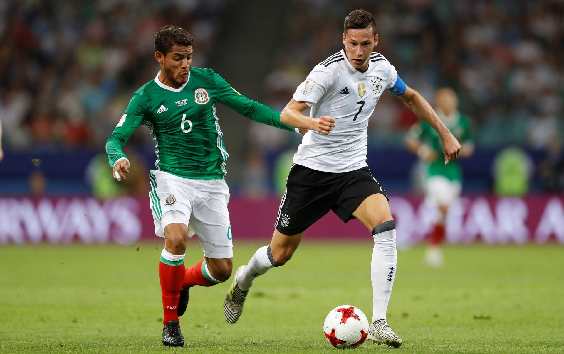 Los mexicanos se jugaron el pase a las semifinales frente a Rusia en Kazán, en el último partido de la fase de grupos. En aquella ocasión, a pesar de que Samédov adelantó al equipo anfitrión, dos tantos de Araujo y Lozano permitieron al conjunto latinoamericano plantarse en semifinales.
