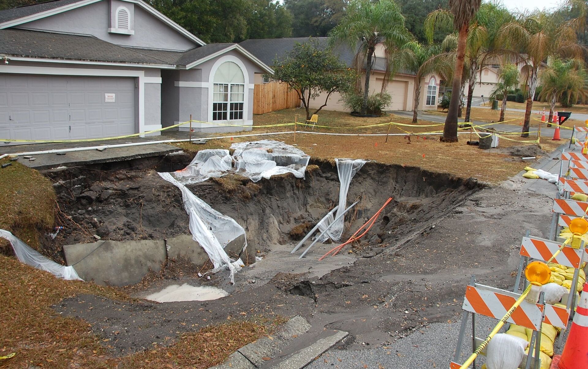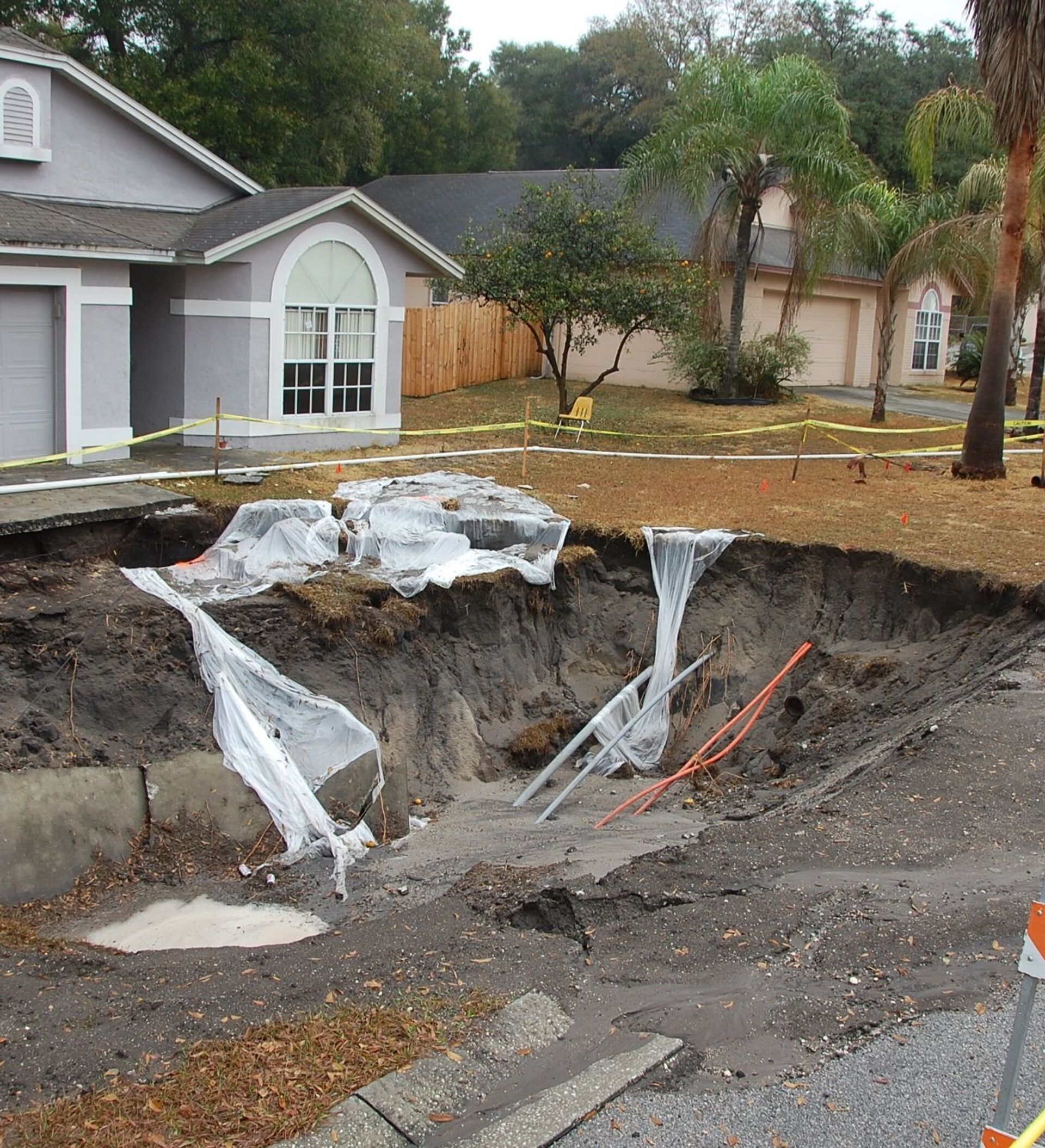 Los primeros mensajes de alerta se produjeron en la mañana del 14 de julio. Cuando los equipos de rescate llegaron al lugar, los residentes informaron de que un socavón estaba expandiéndose hacia una de las casas y tenía el tamaño de una pequeña piscina.