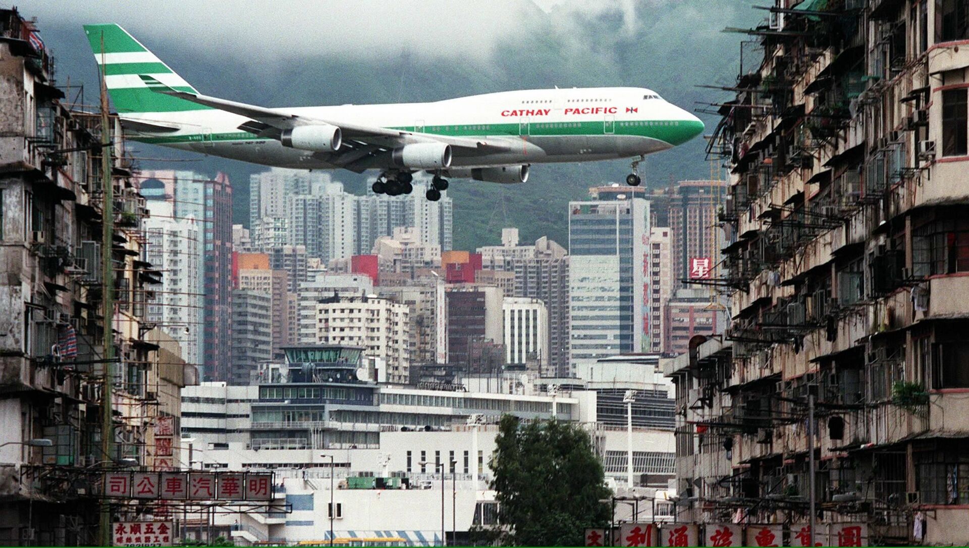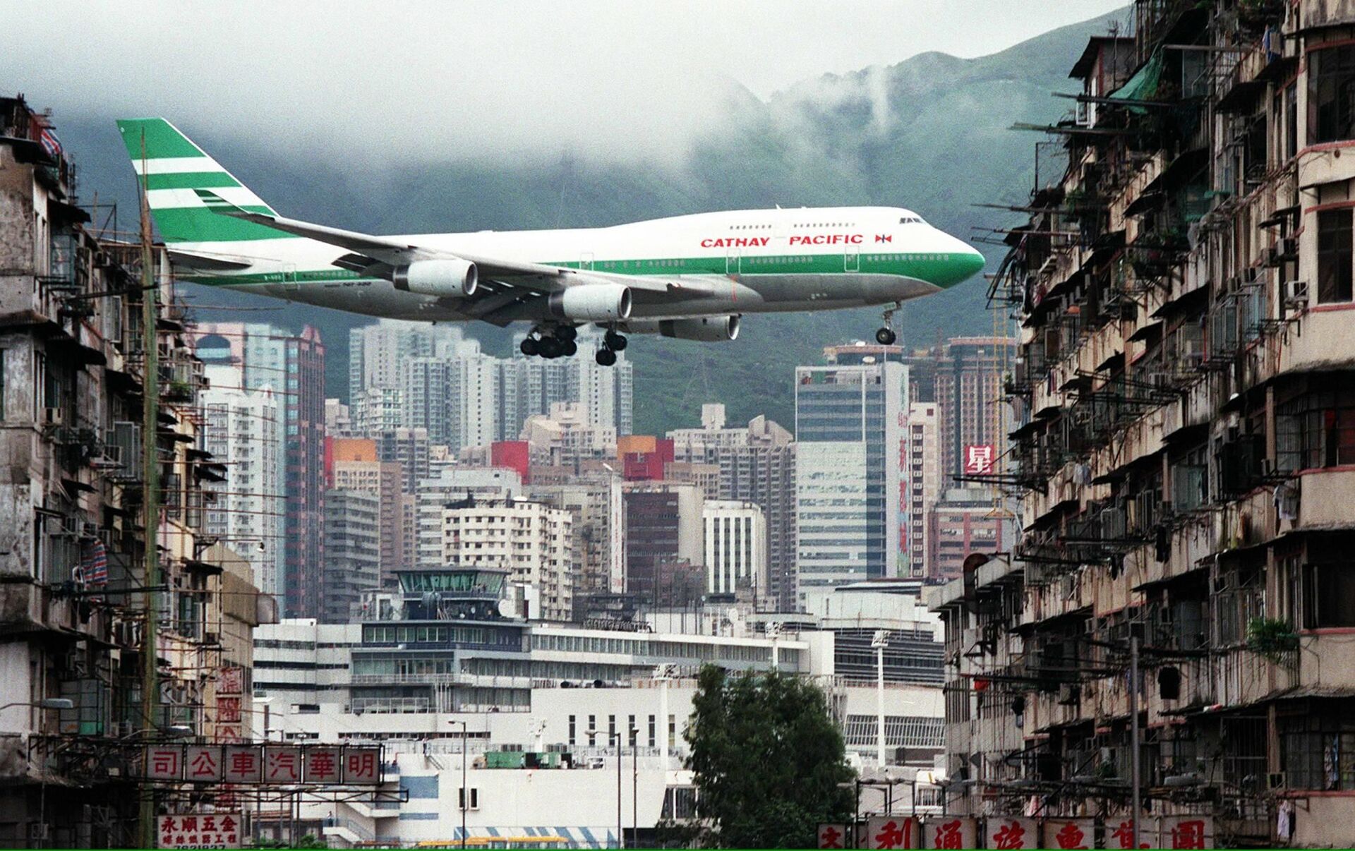 El Aeropuerto Internacional Kai Tak, que fue conocido oficialmente como el Aeropuerto Internacional de Hong Kong desde 1954, está rodeado de colinas y edificios residenciales. Este escalofriante aeródromo fue cerrado en 1998, tras 73 años en funcionamiento.