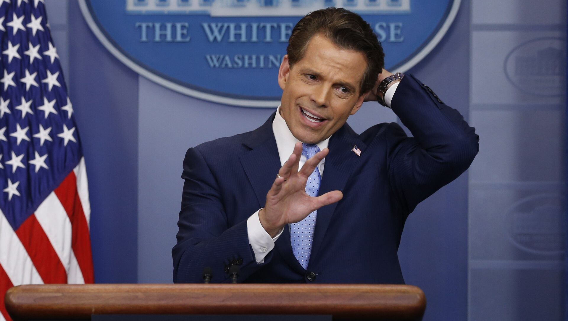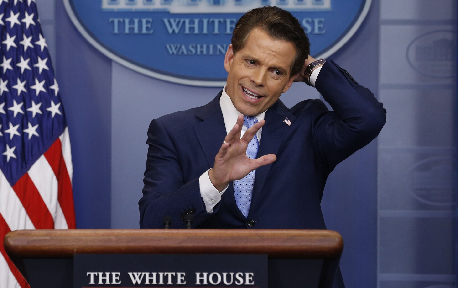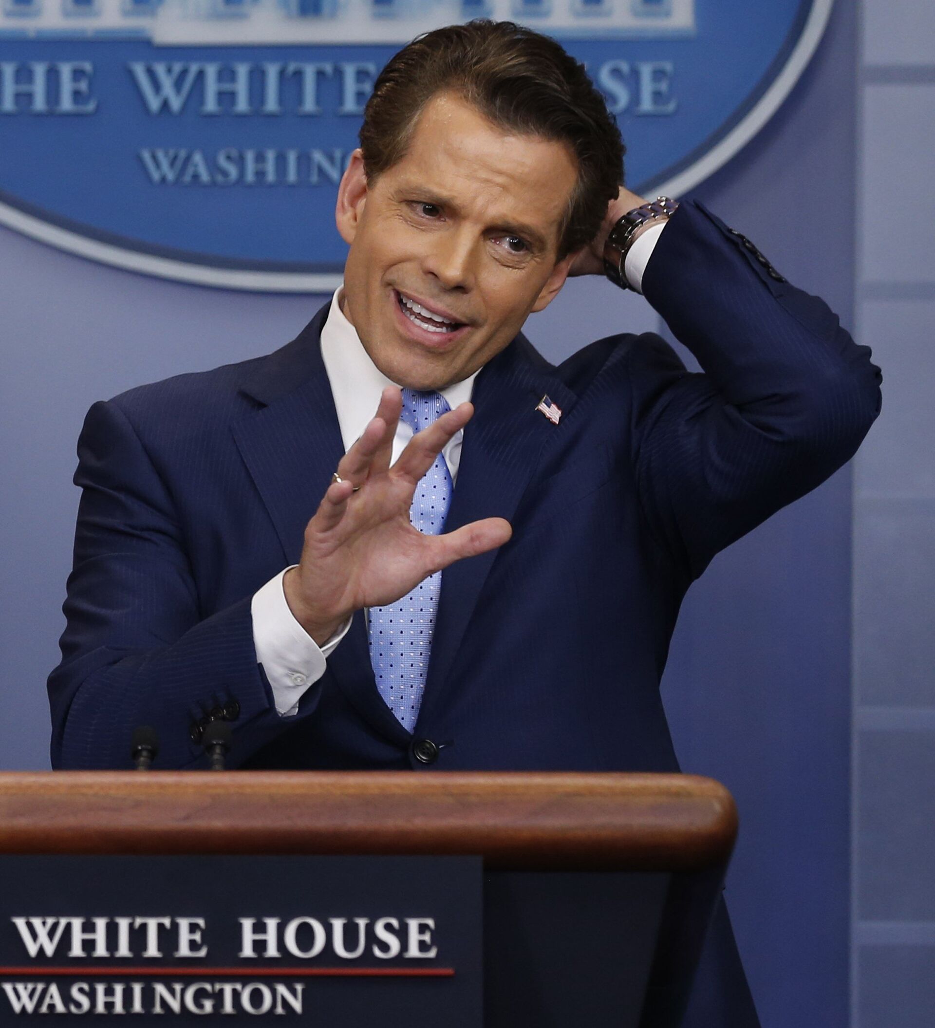 El estilo muy frontal de Sean Spicer había sido motivo para una parodia en el programa Saturday Night Live, la personificación de Melissa McCarthy logró un record de teleaudiencia. Se le consideraba directo y un tanto agresivo a la hora de interactuar con los periodistas que cubren la fuente de la casa de gobierno. En cambio, cuando Anthony Scaramucci hizo su debut, parecía más bien una conferencia motivacional de desarrollo personal. El nuevo director de comunicaciones utilizó la palabra 'amor' en todas las formas posibles y llegó a usar ese sustantivo recurrentemente y expresar su amor por el presidente y todo lo demás que pueda ser amado. Con el paso de los días nos daríamos cuenta que ese amor evolucionaría a amenazas e insultos.