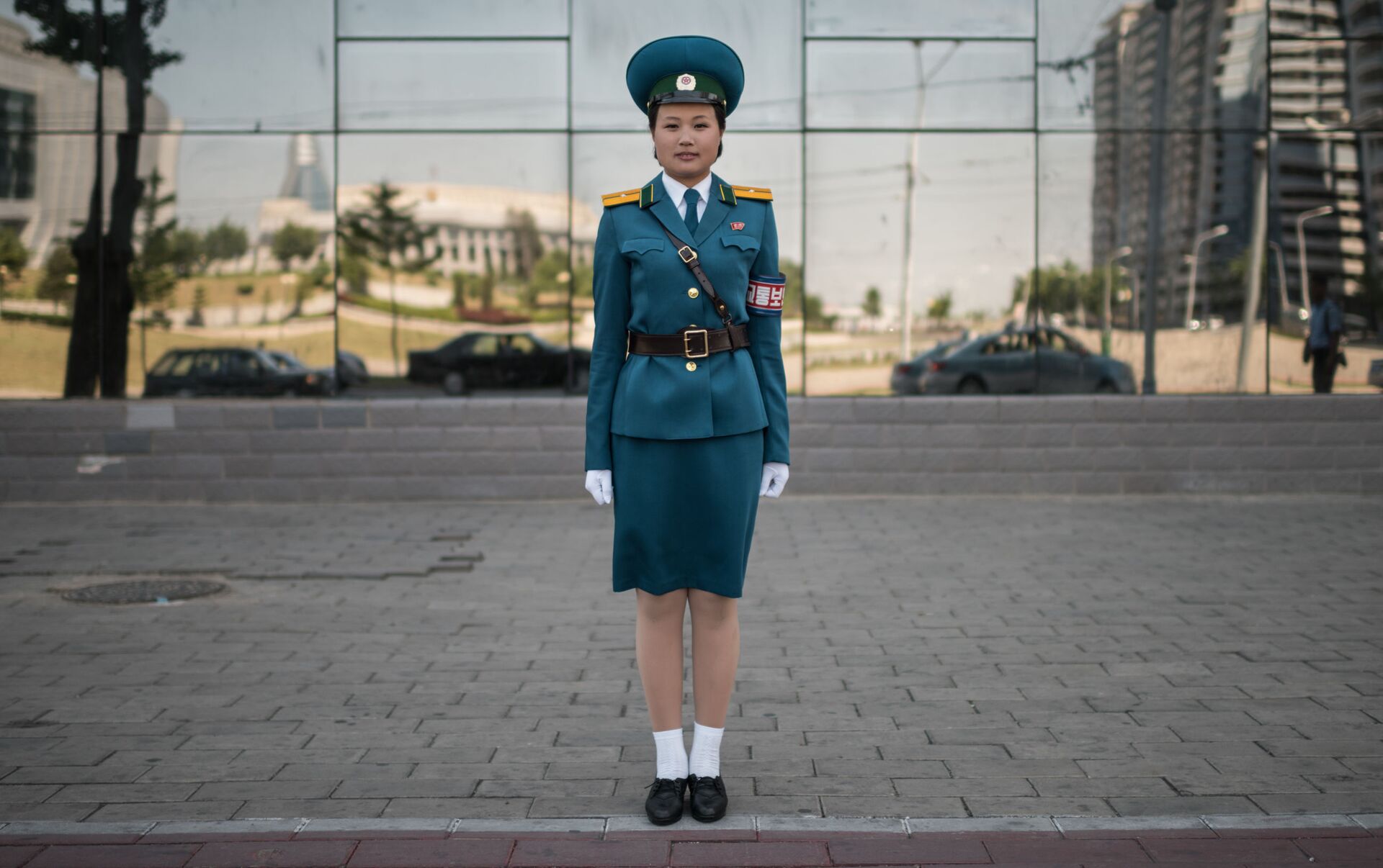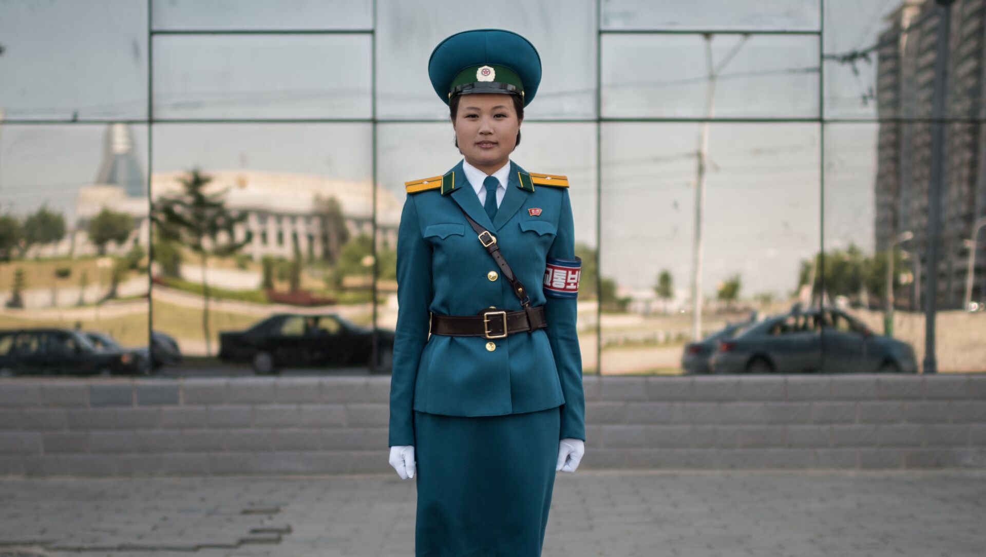 Una oficial del Servicio de seguridad de tráfico, la teniente Kim Jong-Hua, en una de las calles de Pyongyang.
