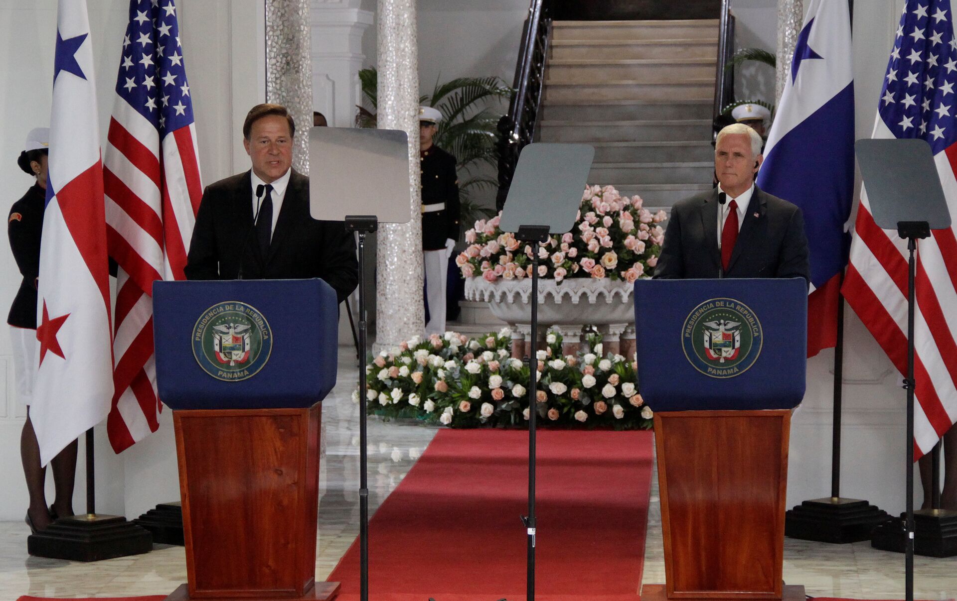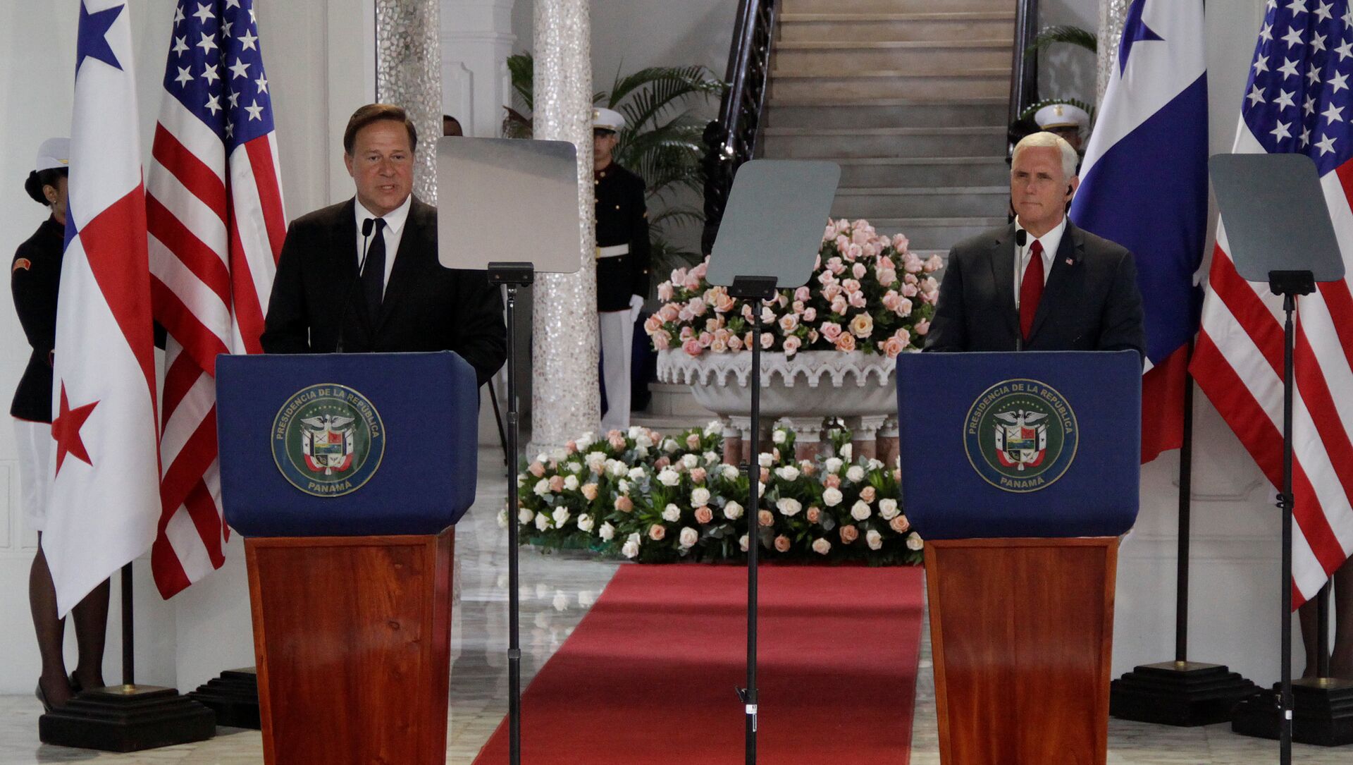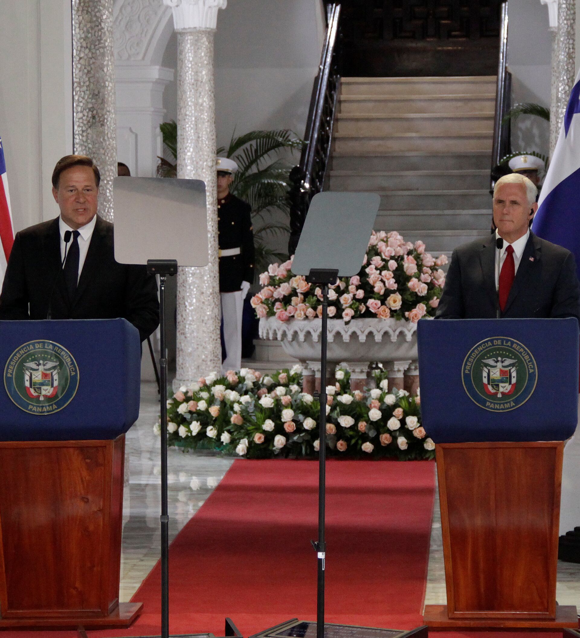 "Panamá tomará medidas en los próximos días que respaldan el retorno a la democracia en Venezuela; el Gobierno panameño dice que (el presidente venezolano, Nicolás) Maduro debe respetar los derechos humanos (y) la separación de poderes", afirmó el jefe de Estado durante una conferencia de prensa con el vicepresidente de EEUU, Mike Pence, quien se encuentra de visita oficial en el país centroamericano.