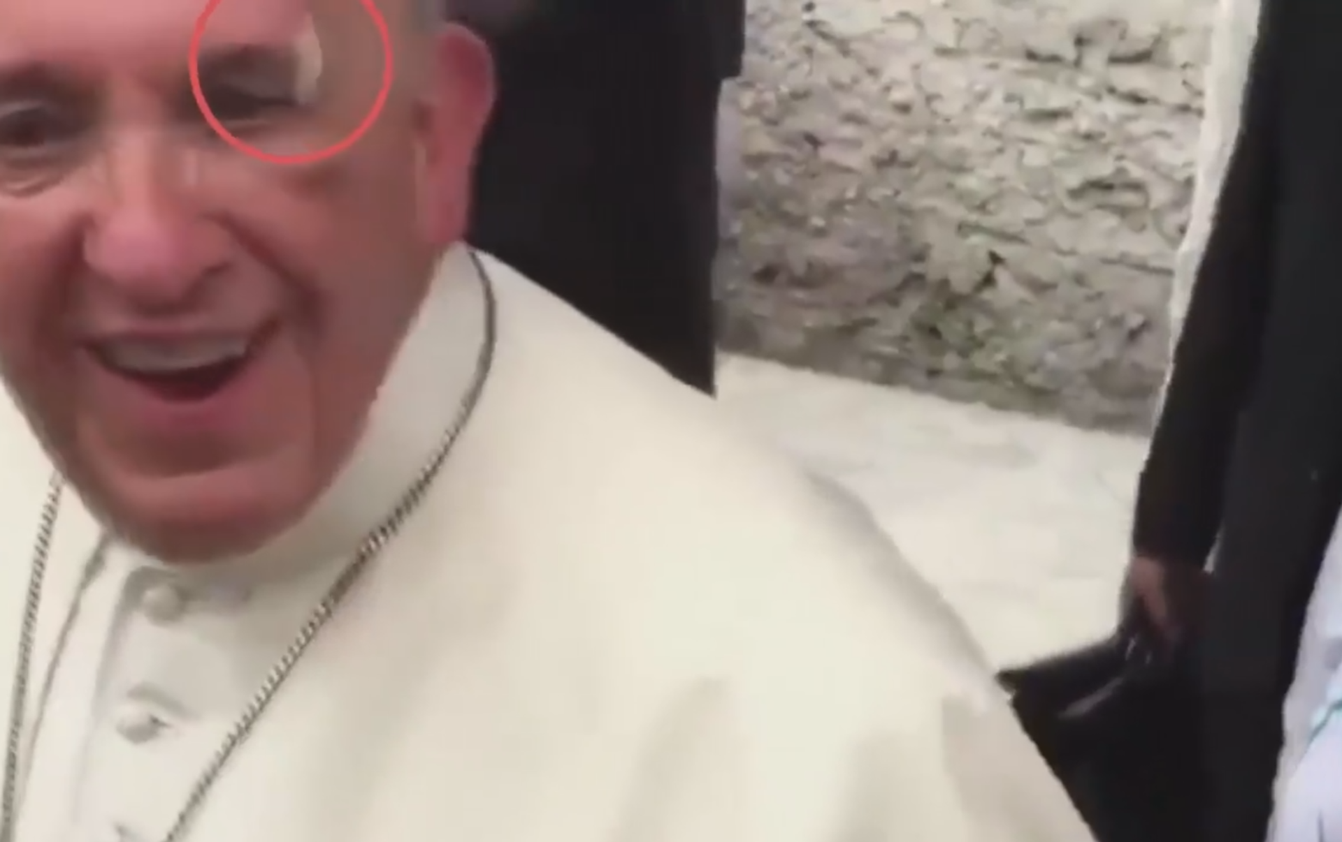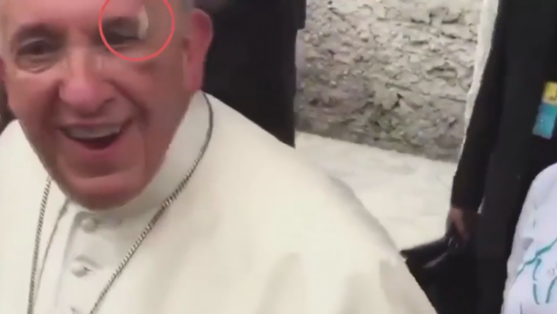 El portavoz oficial del Vaticano, Greg Burke, afirmó que el papa se había dado un golpe contra el cristal del vehículo encima de la ceja y en el pómulo y que su santidad "estaba bien".