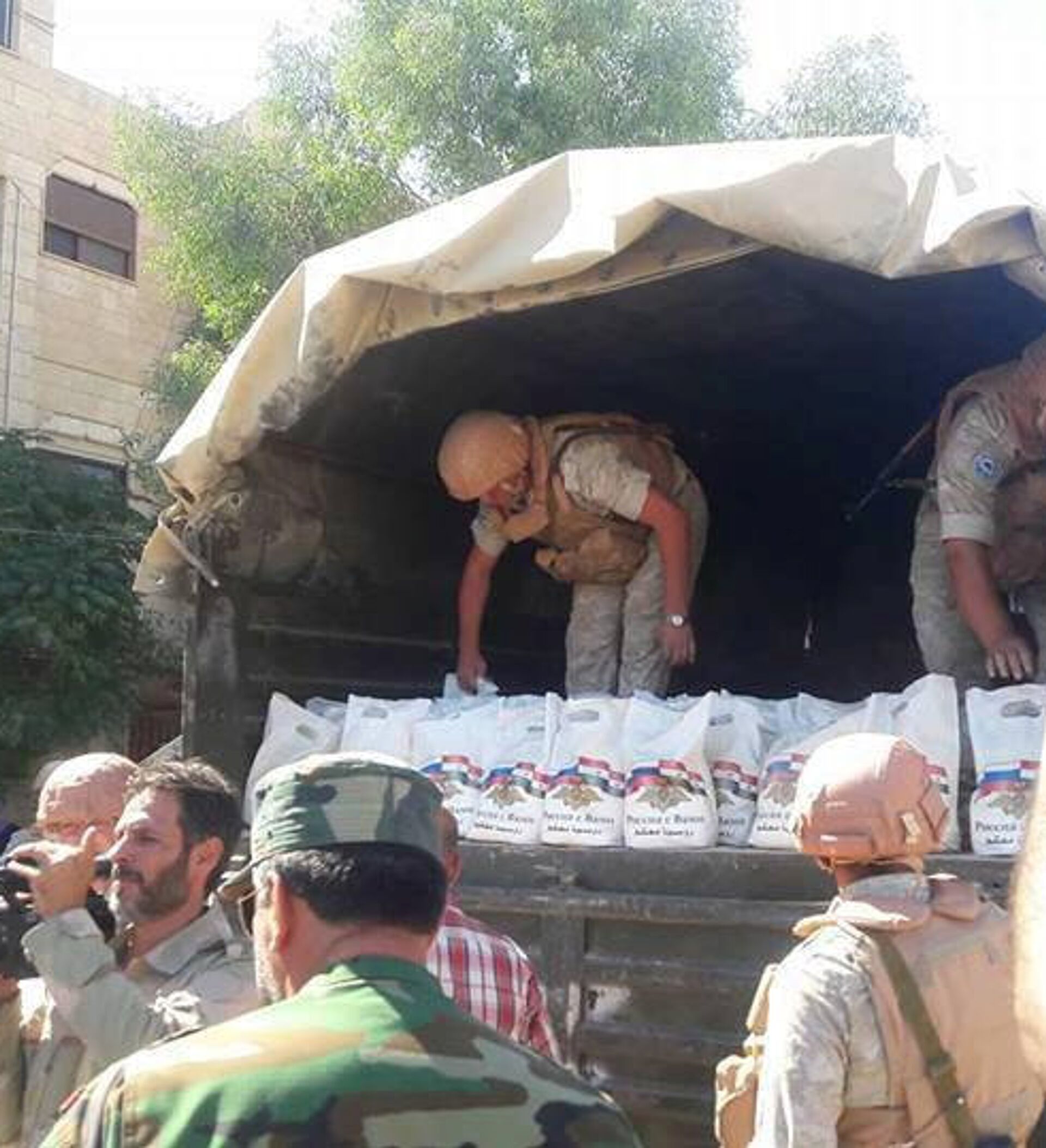 "Fue realizada una acción humanitaria en la provincia de Homs; los habitantes de Deir Baalba recibieron 420 kits de alimentos con trigo, harina, carne en lata y té", informó el centro.