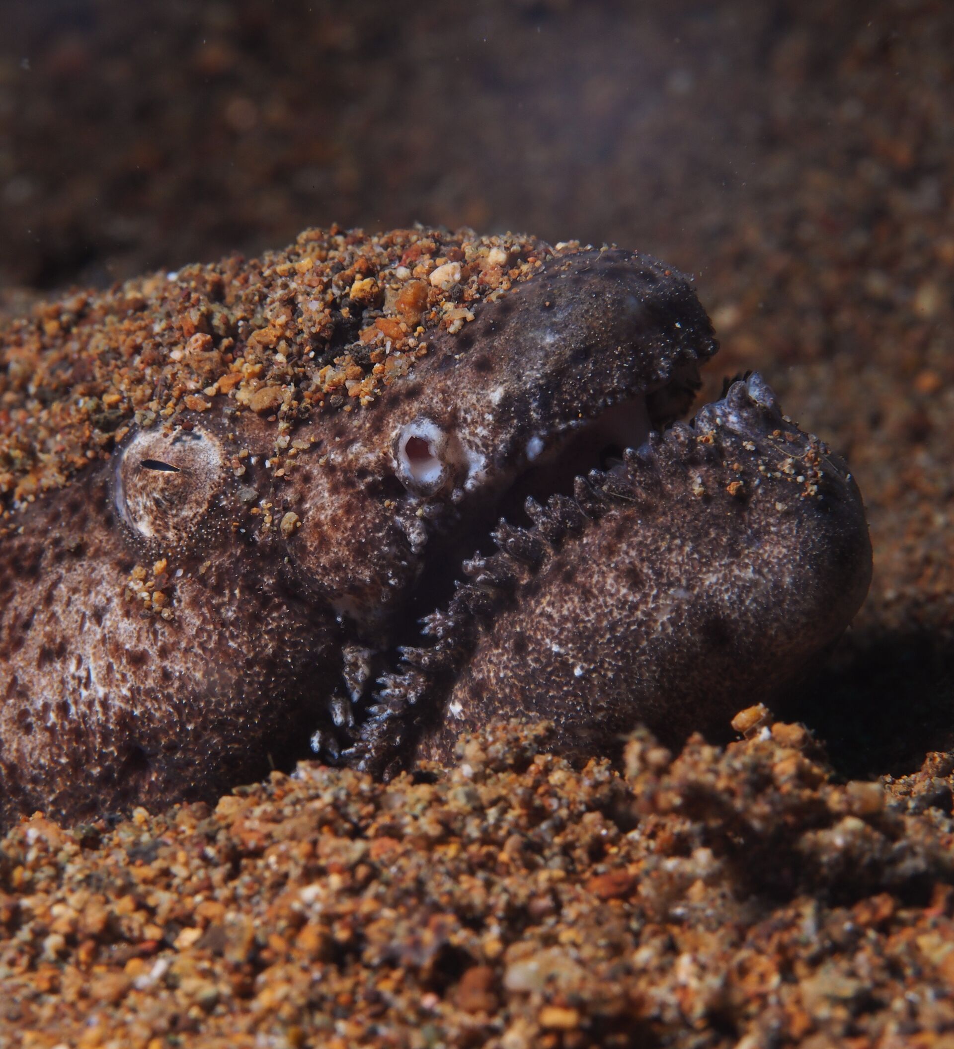 En respuesta a la publicación en la red social Twitter de Preeti Desai, de la Sociedad Nacional Audubon, quien pedía ayuda para identificar a un 'bicho raro' que había hallado en una playa de Texas, Tighe aseguró que se trataba de una criatura que habita tanto en el Caribe como en el golfo de México. El animal es conocido como Aplatophis chauliodus o anguila de colmillos.