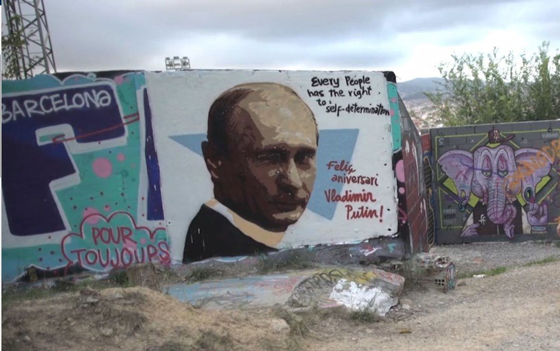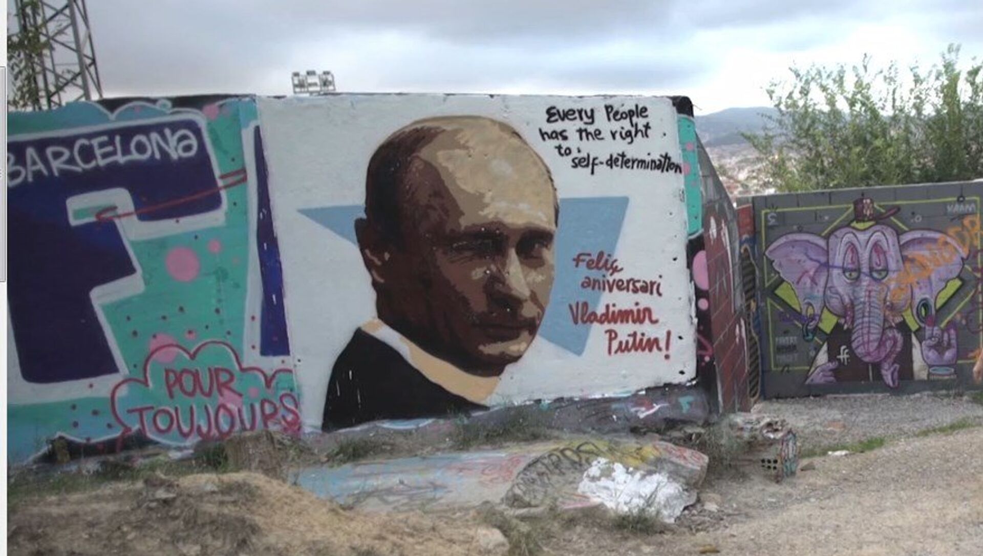 En la ciudad española de Barcelona, capital de Cataluña, apareció el 6 de octubre un grafiti del presidente de Rusia, Vladímir Putin, en vísperas del cumpleaños del líder ruso que cumple 65 años el 7 de octubre.