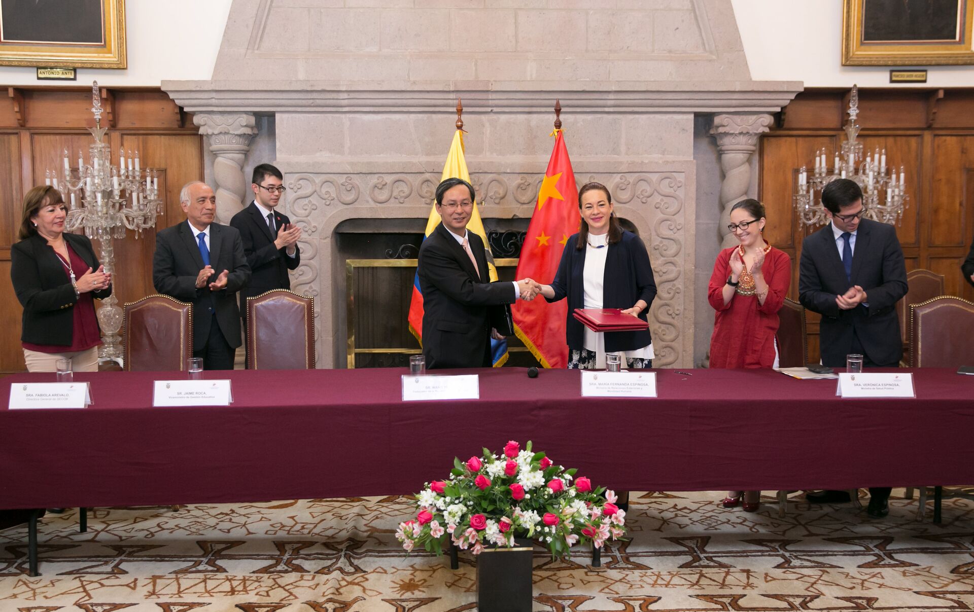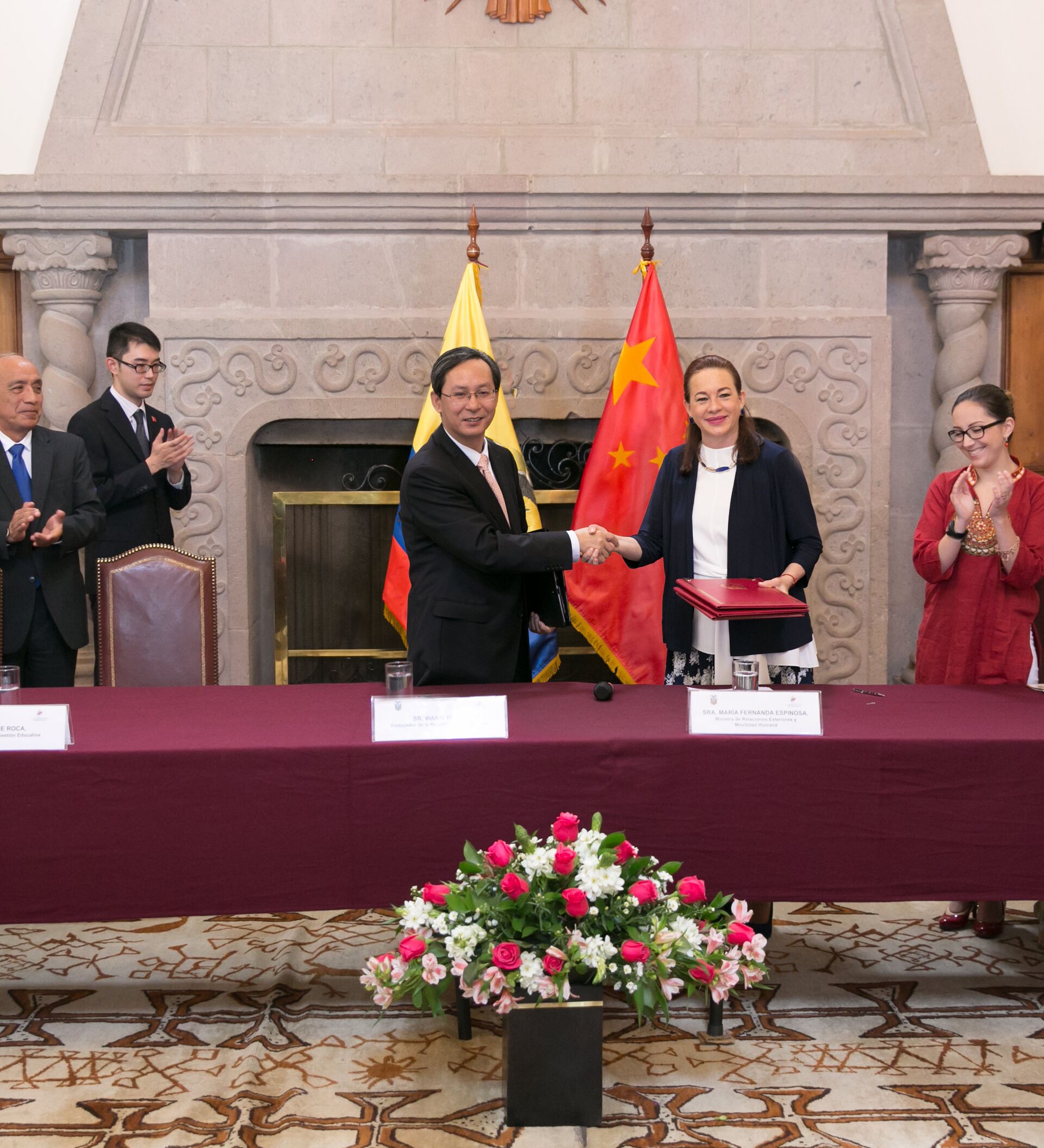 "Reconocemos la valiosa cooperación del Gobierno chino en su compromiso de entregar recursos no reembolsables por un monto mayor a los 150 millones de dólares", dijo este miércoles la canciller ecuatoriana María Fernanda Espinosa durante la suscripción de los convenios con el embajador de China en el país, Wang Yulin.