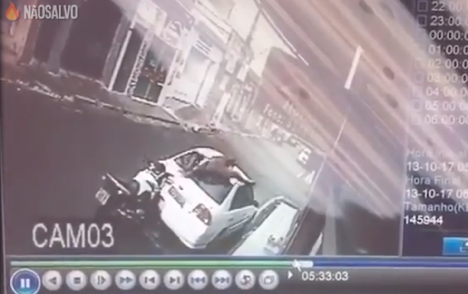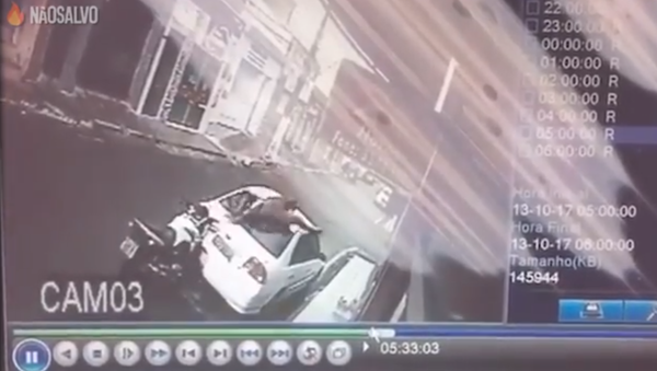 En las imágenes grabadas por una cámara de seguridad, en la pequeña ciudad de Neopolis en el nordeste del país sudamericano, se puede observar el momento exacto en el que un motociclista colisiona contra un vehículo que se encontraba parqueado.