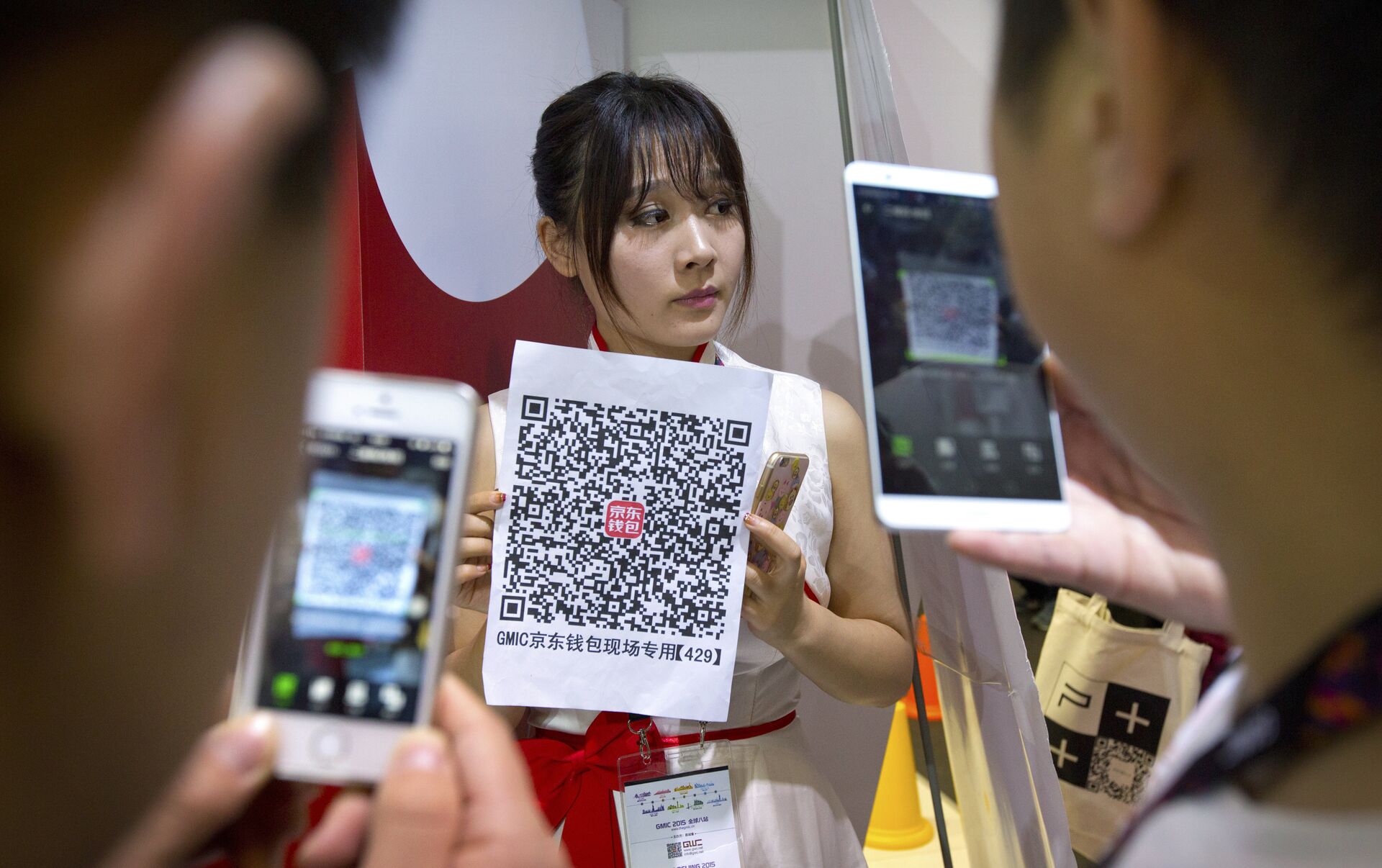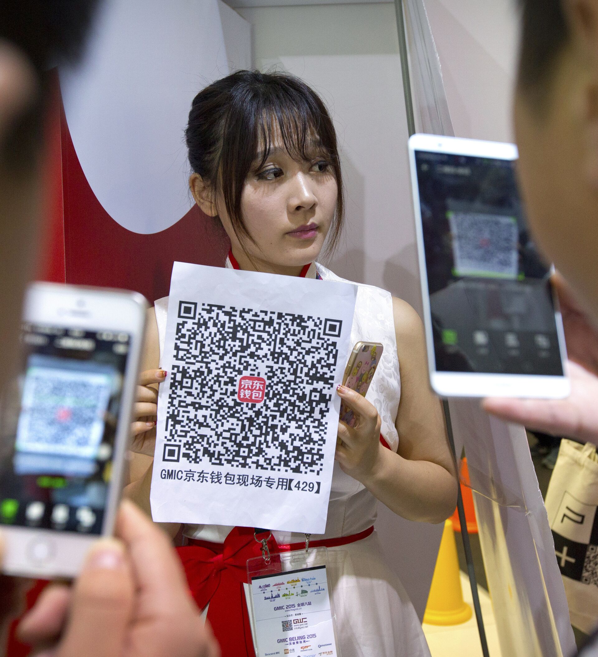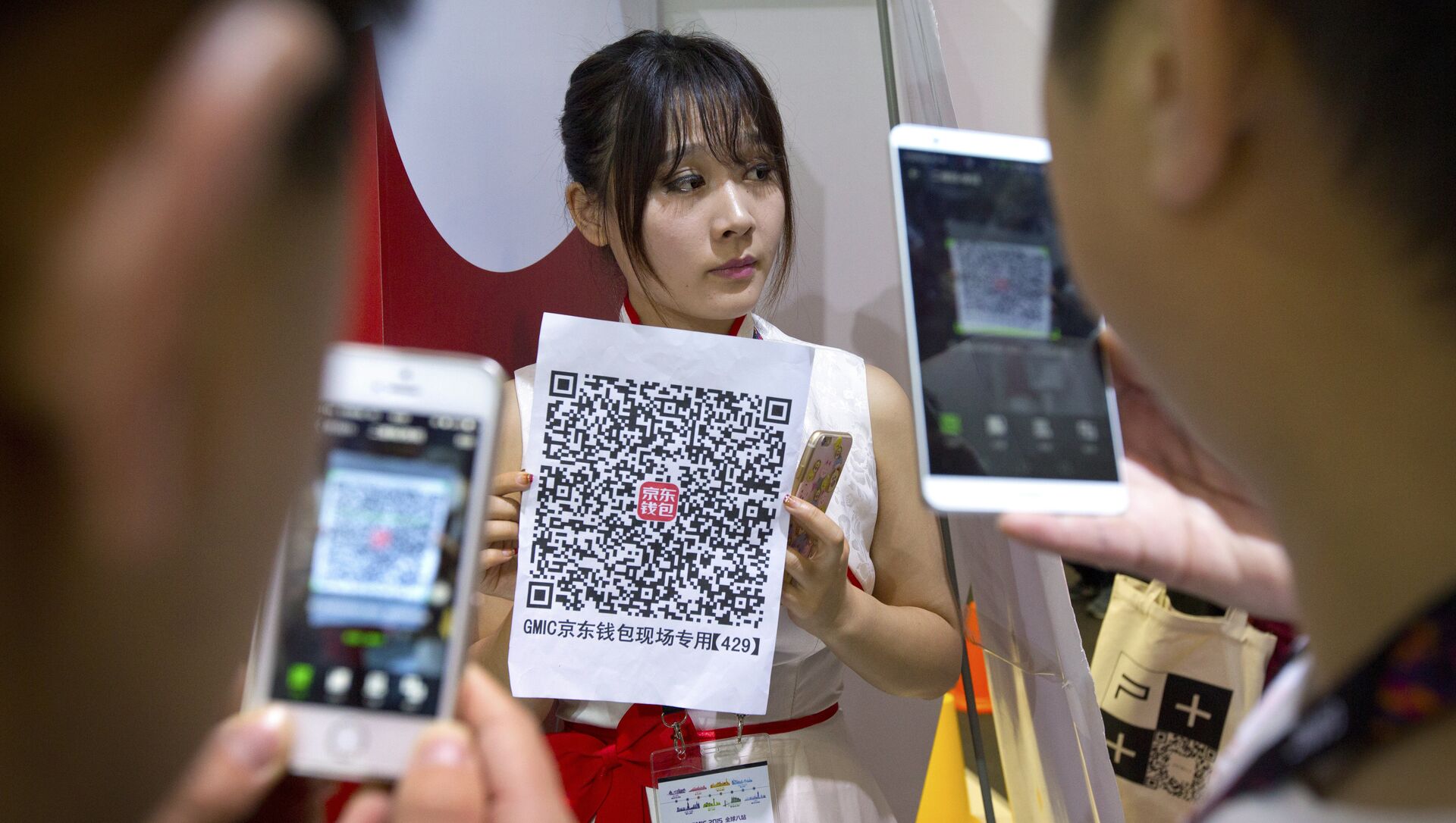 Los códigos QR son utilizados a diario por los chinos como plataforma de pago. Los camareros usan comúnmente camisetas con un código QR impreso en la espalda para que los visitantes puedan escanearlo y dejarle una propina. Incluso los mendigos piden limosnas con códigos QR en los carteles para que se les puedan transferir donaciones.