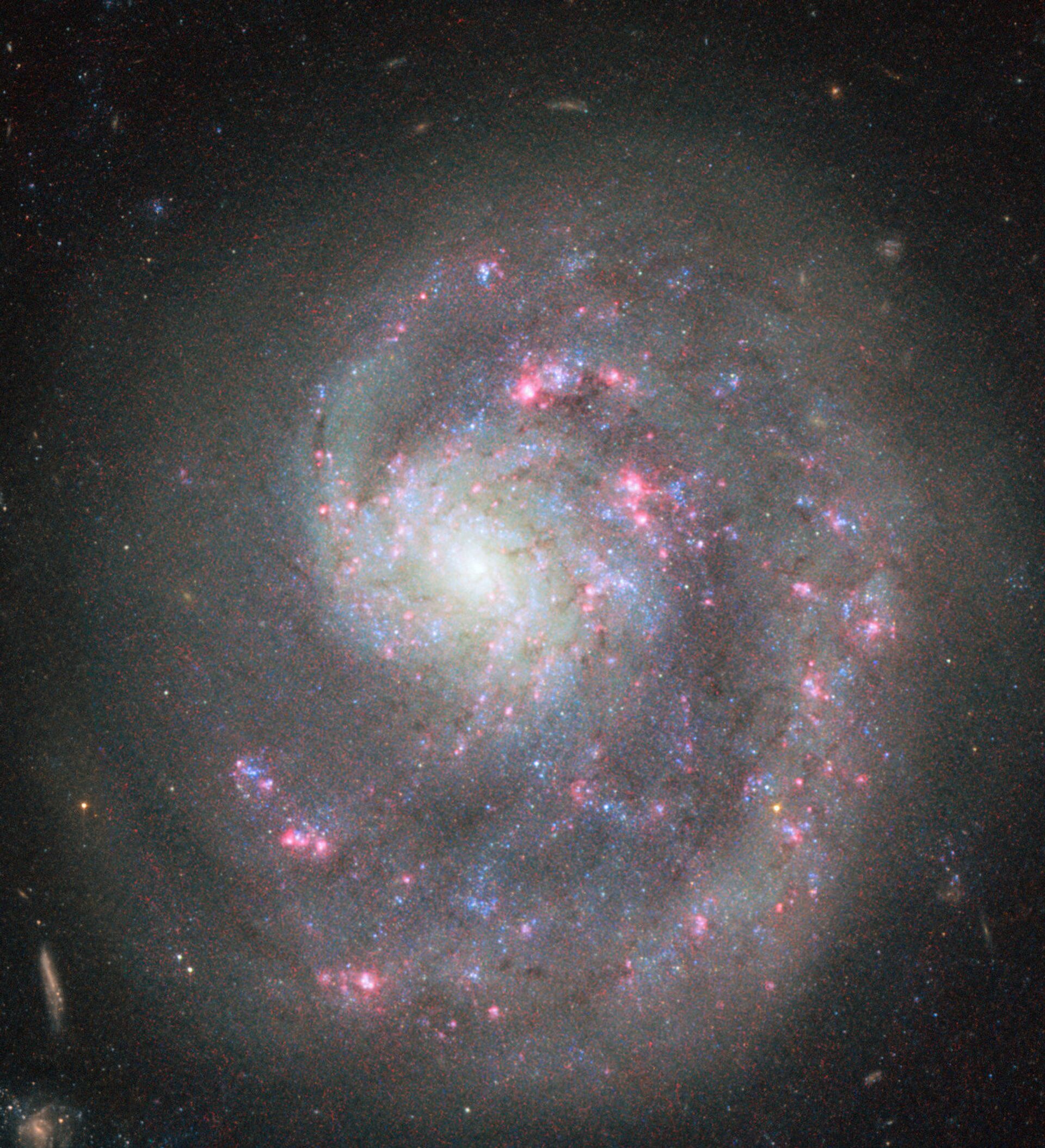 Es una indicación de que hay un gran número de estrellas muy jóvenes y calientes formadas en las regiones exteriores de la galaxia. Ahora los científicos creen que una galaxia cercana podría ser responsable por la pérdida del segundo brazo que le falta a la galaxia. Especulan con que la NGC 4618 puede ser culpable de haberle quitado esta 'extremidad' a la NGC 4625.