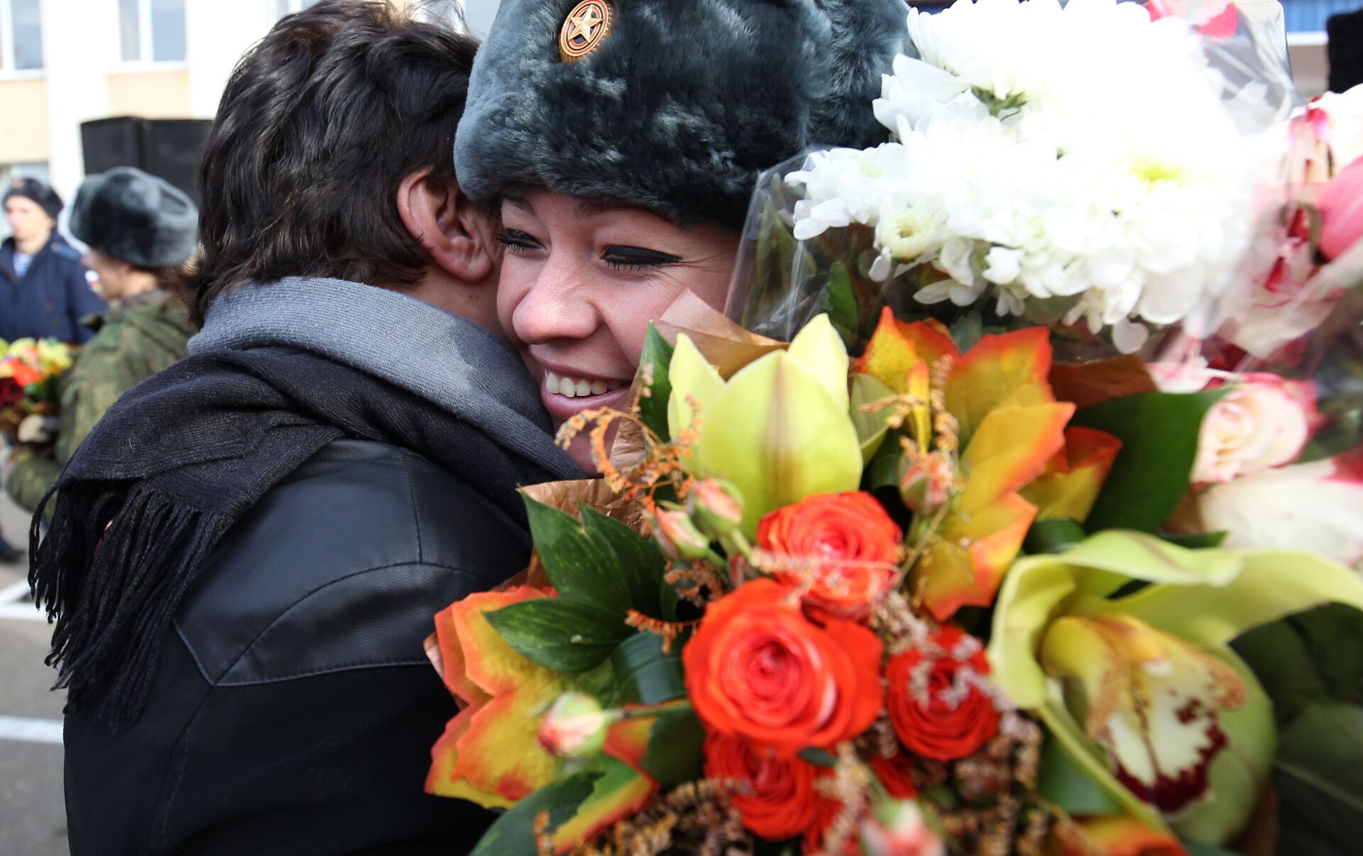 Militares de la unidad médica especial que regresaron de Siria se reencuentran con sus familiares.