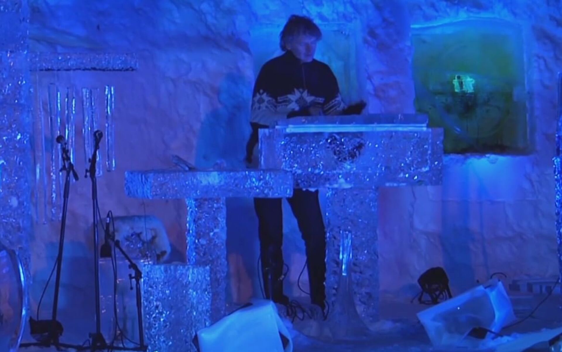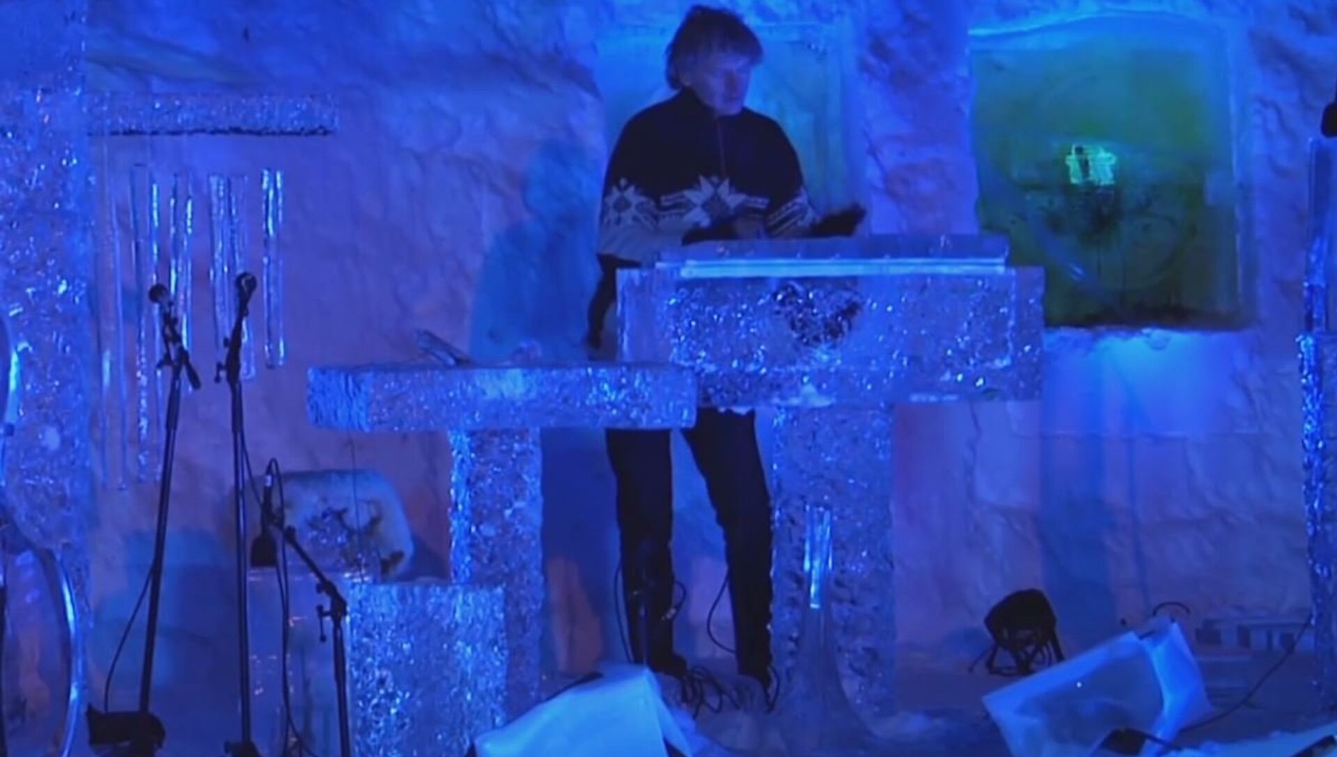 El músico noruego Terje Isungset toca varios instrumentos musicales de su propia producción. Terje hace sus inusuales instrumentos de hielo. 25.12.2017, Sputnik Mundo