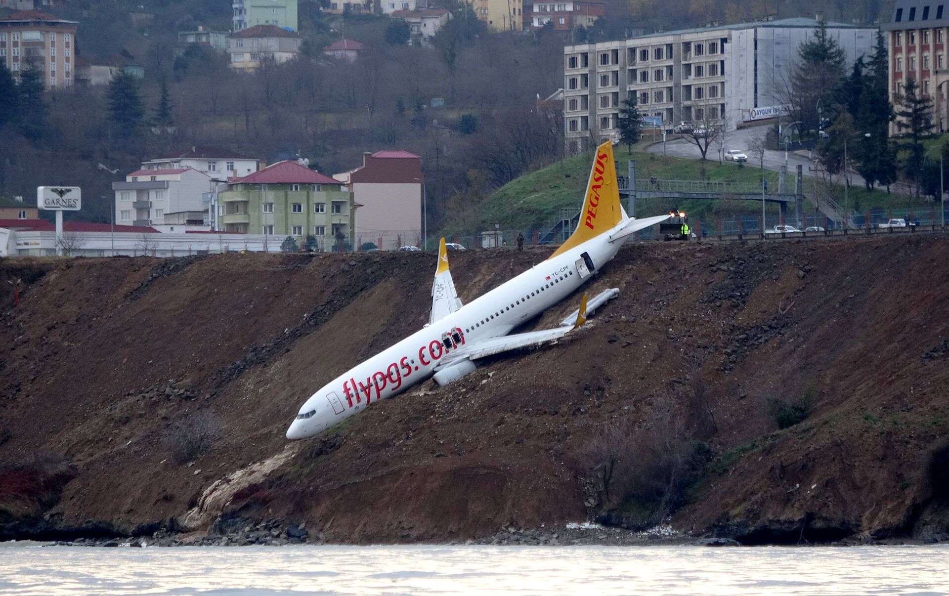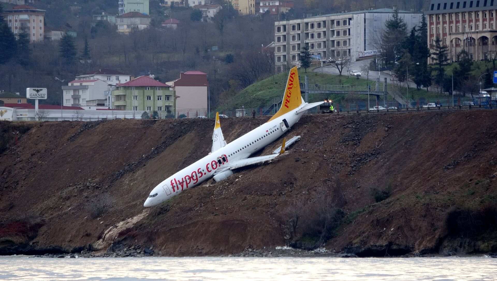 El 14 de enero la aeronave se salió de la pista de aterrizaje, cayendo por una cuesta y deteniéndose en la ladera, a pocos metros del mar Negro.