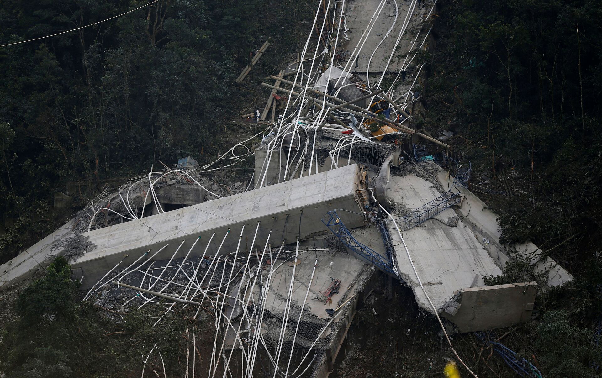Las víctimas, trabajadores de la obra, habrían caído desde una altura de 280 metros por causa del derrumbe súbito de la estructura, que ya estaba bastante avanzada y que tiene una extensión de 446 metros.