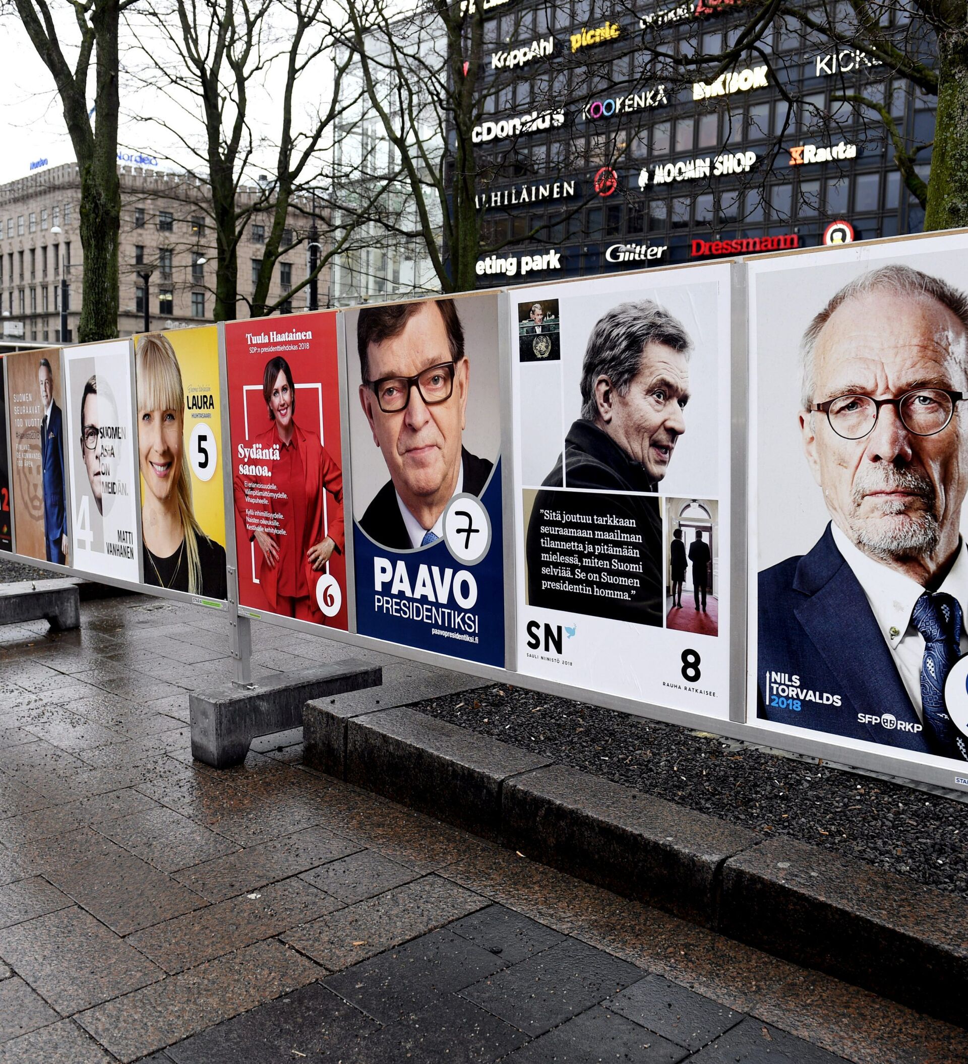 © REUTERS / Antti Aimo-KoivistoCarteles de los candidatos a la presidencia de Finlandia
