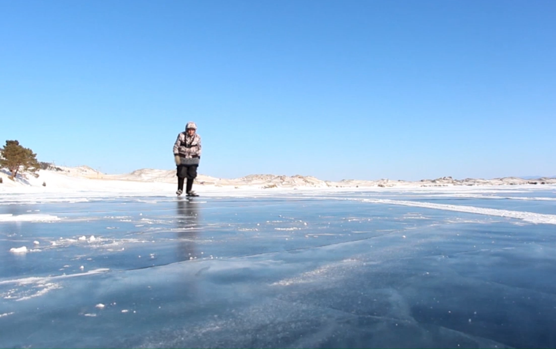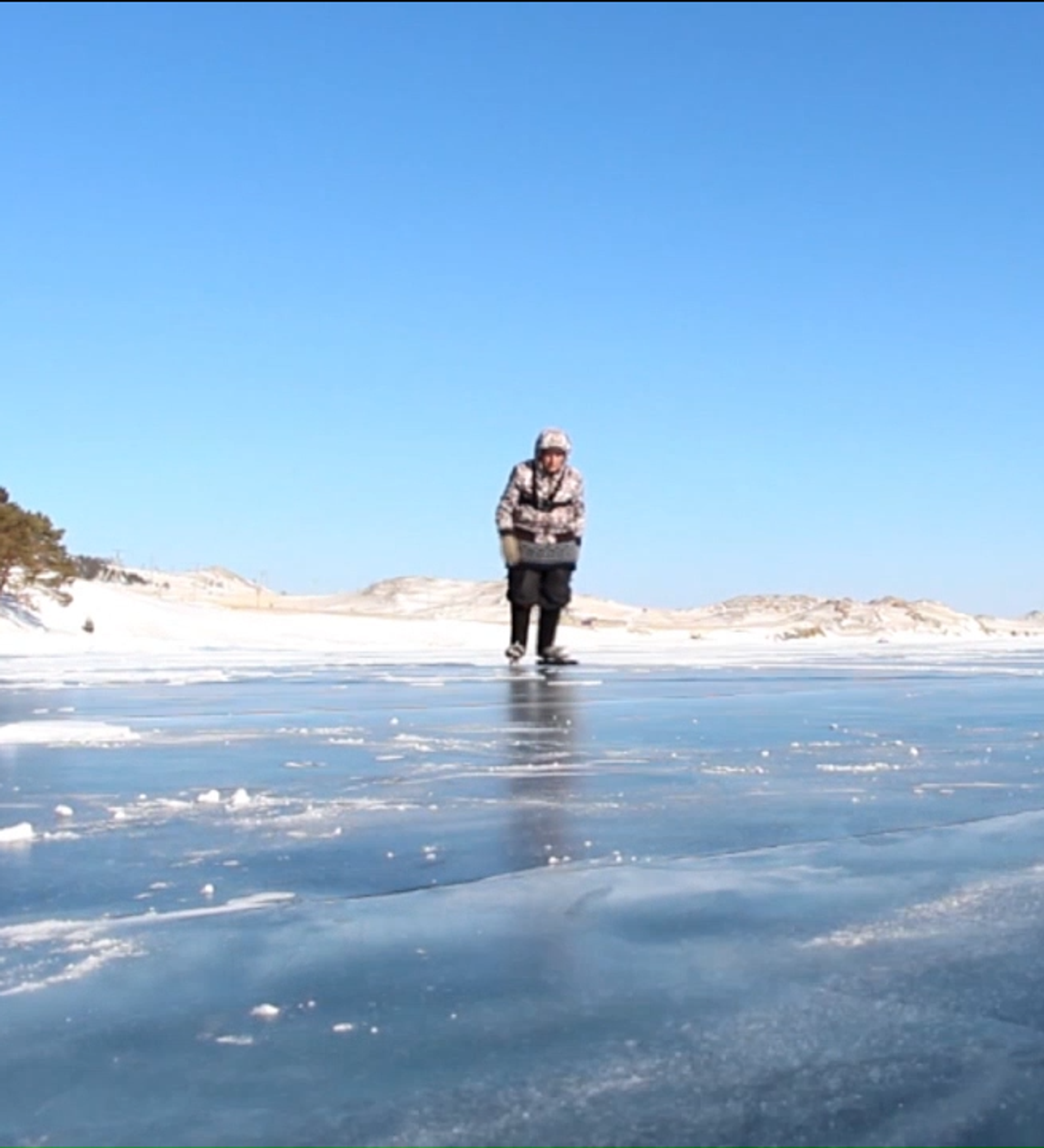 Una maestra de patinaje de 76 años se desliza por el lago Baikal