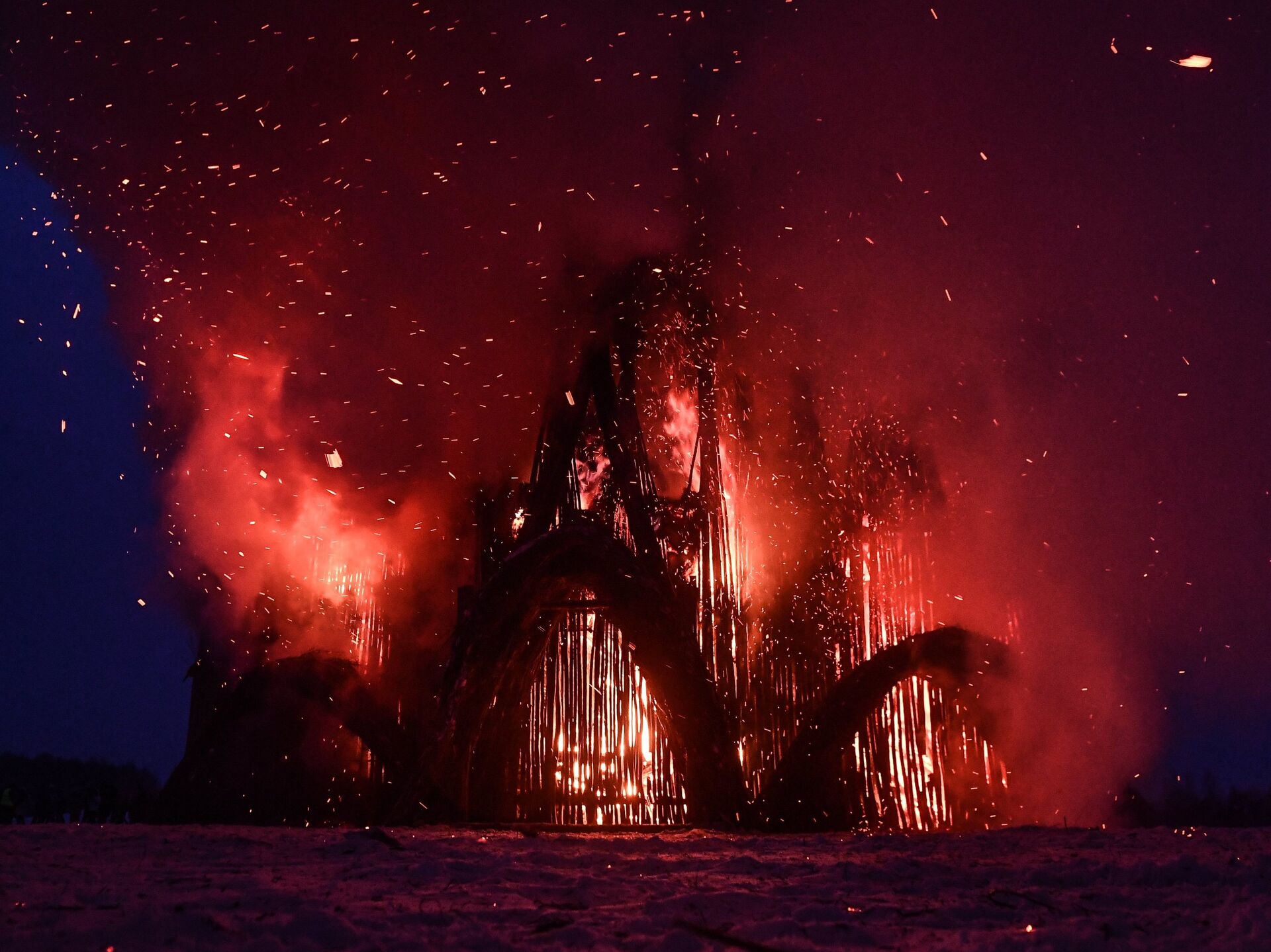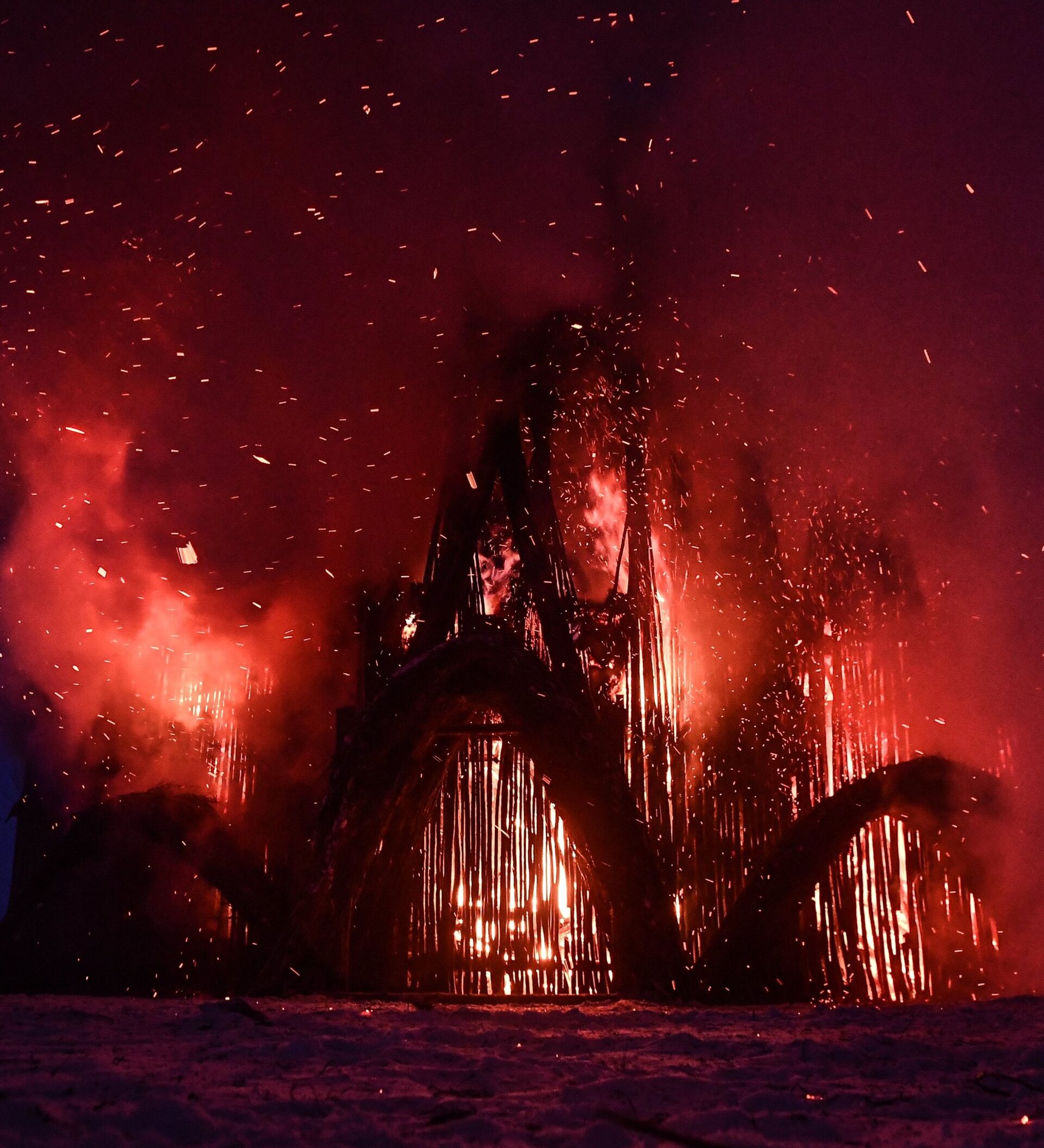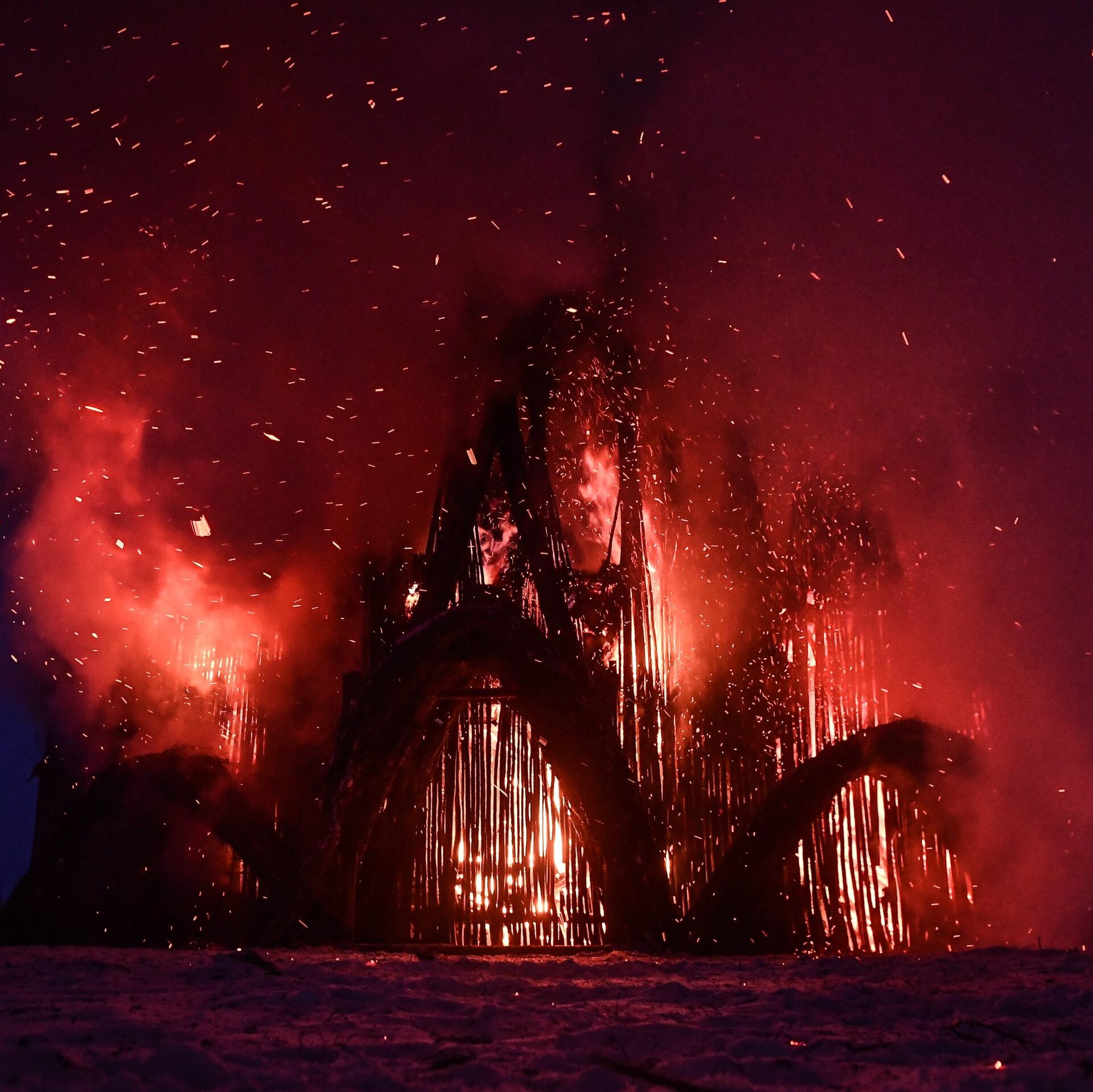 El 18 de febrero, el último día del carnaval ruso Máslenitsa, festival con el que los rusos despiden el invierno, se queman figuras hechas de paja que simbolizan esa temporada del año y normalmente representan a una mujer.