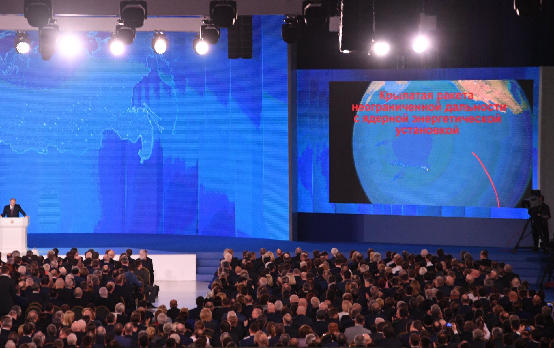 Para ilustrar su discurso Putin se valió por primera vez de un vídeo sobre la prueba de una nueva arma rusa.