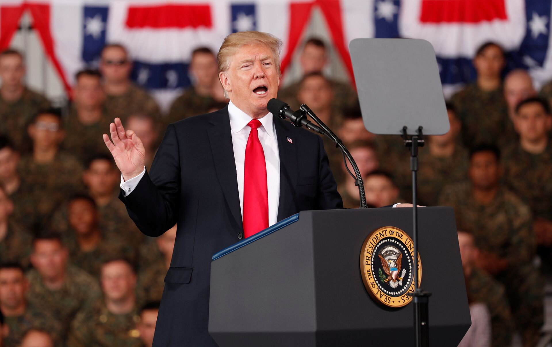 "Mi nueva estrategia nacional espacial reconoce que en el espacio pueden tener lugar acciones de combate al igual que en la tierra, el aire y el agua, nosotros incluso podemos tener fuerzas espaciales… tenemos fuerza aérea, tendremos espaciales, terrestres y navales", expresó durante un discurso en California.