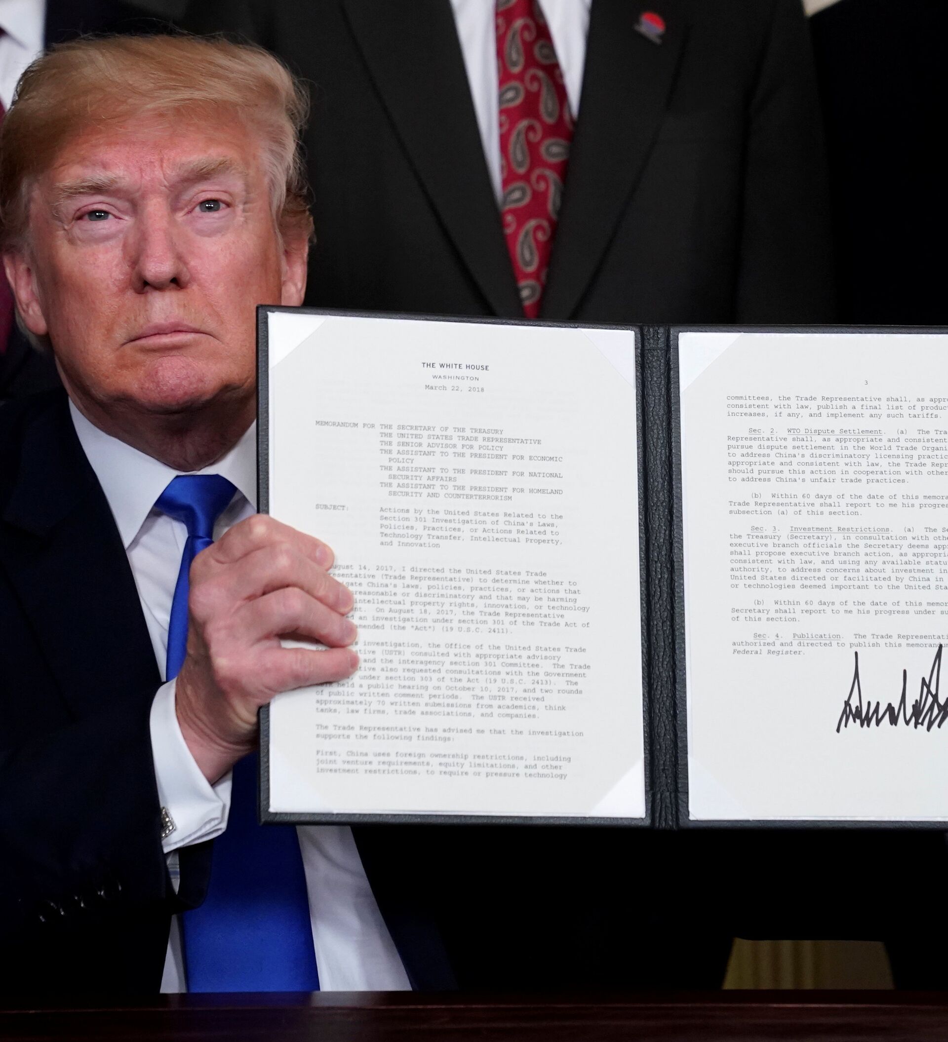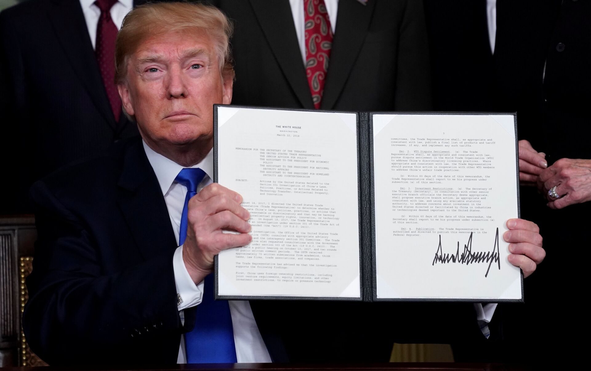 El presidente comentó mientras firmaba que "este es el primero de muchos (aranceles)".