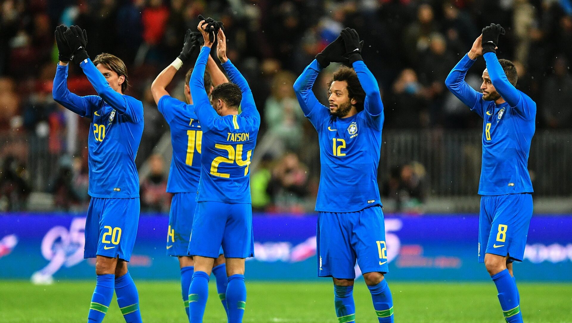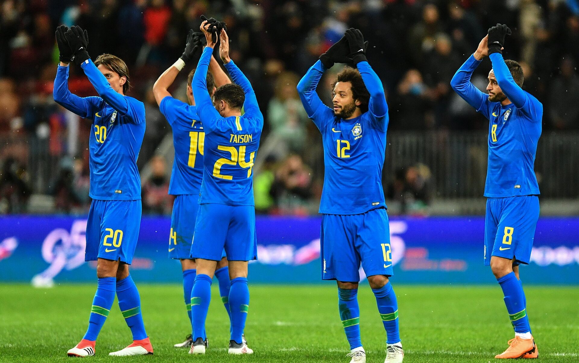 Los tres goles fueron marcados en la segunda mitad del encuentro, por Joao Miranda en el minuto 53, Philippe Coutinho en el 62, y Paulinho que cuatro minutos más tarde metió un cabezazo en la puerta de Ígor Akinféev.