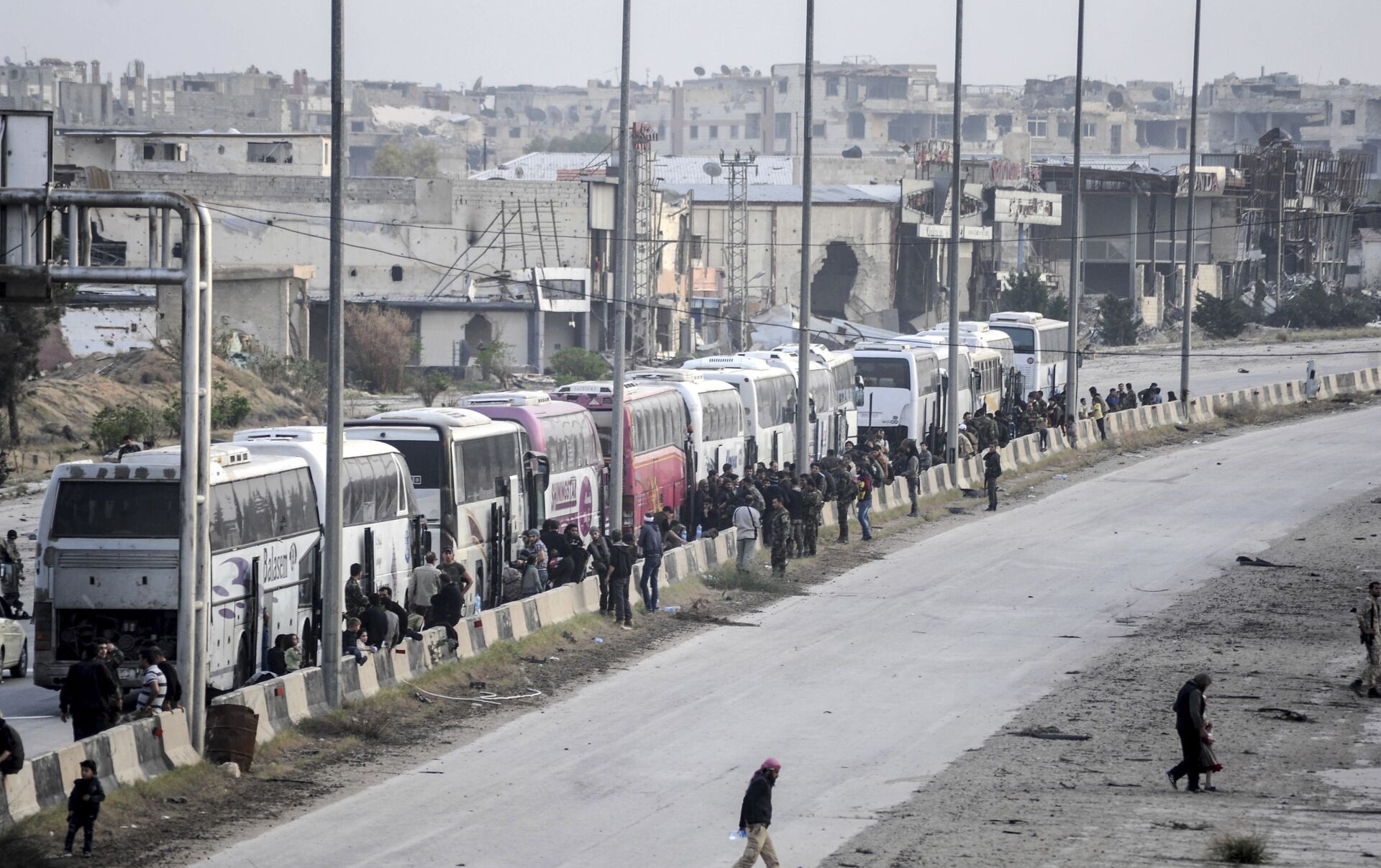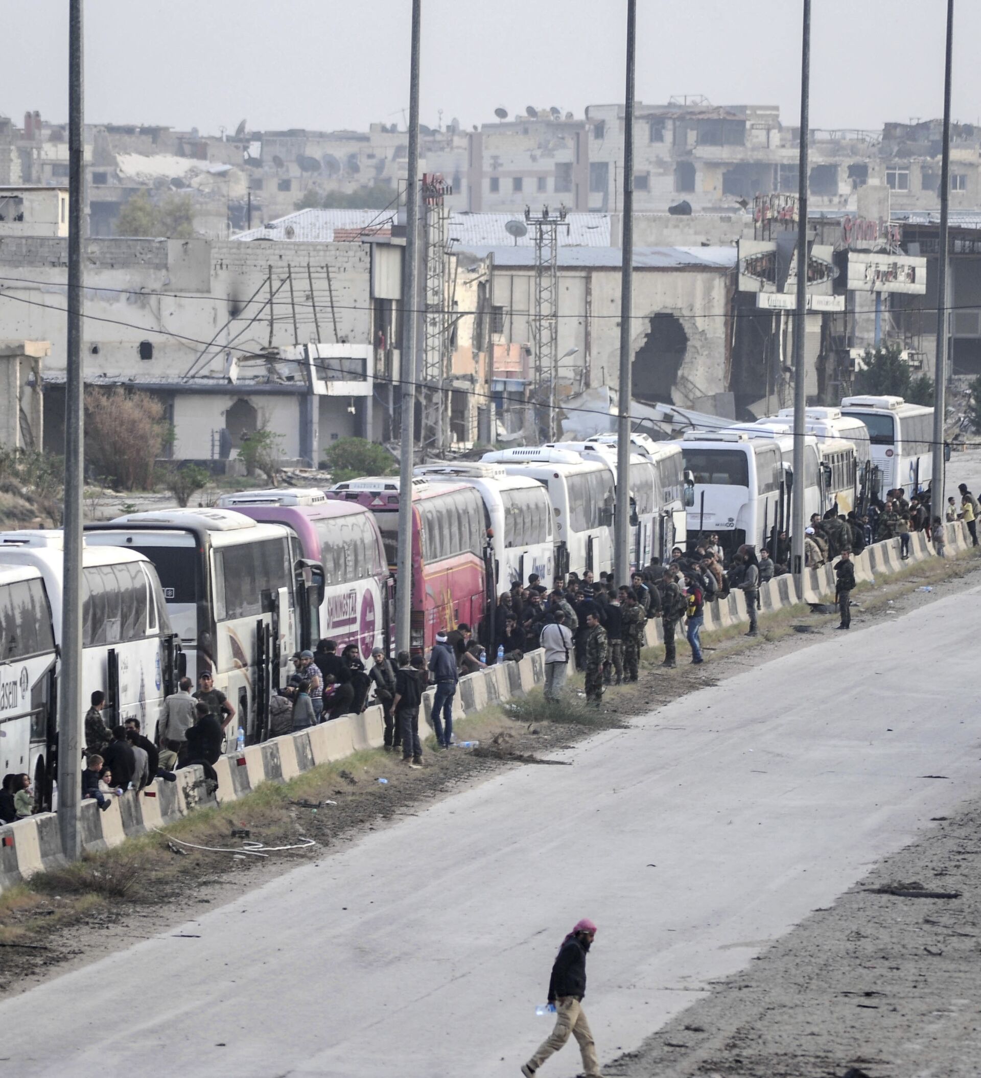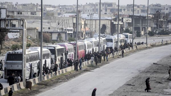 "De momento, 11 autobuses con 655 personas, incluidos 216 hombres, entre ellos 176 combatientes, así como 164 mujeres y 275 menores, abandonaron la ciudad de Harasta", informó la agencia.