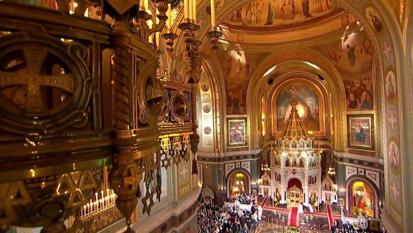 Oficio religioso de la Pascua ortodoxa en la principal catedral de Rusia