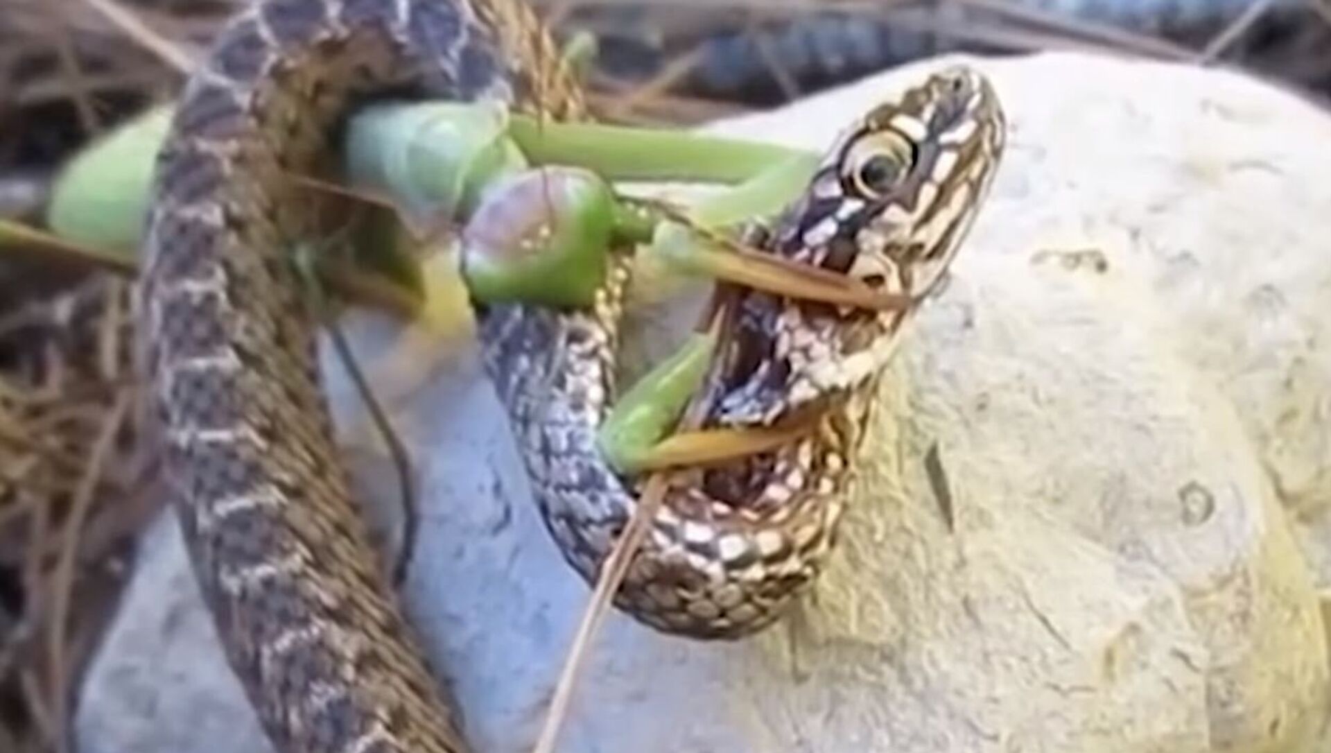 Una mantis religiosa decide atacar a una serpiente: ¿quién sobrevivirá?