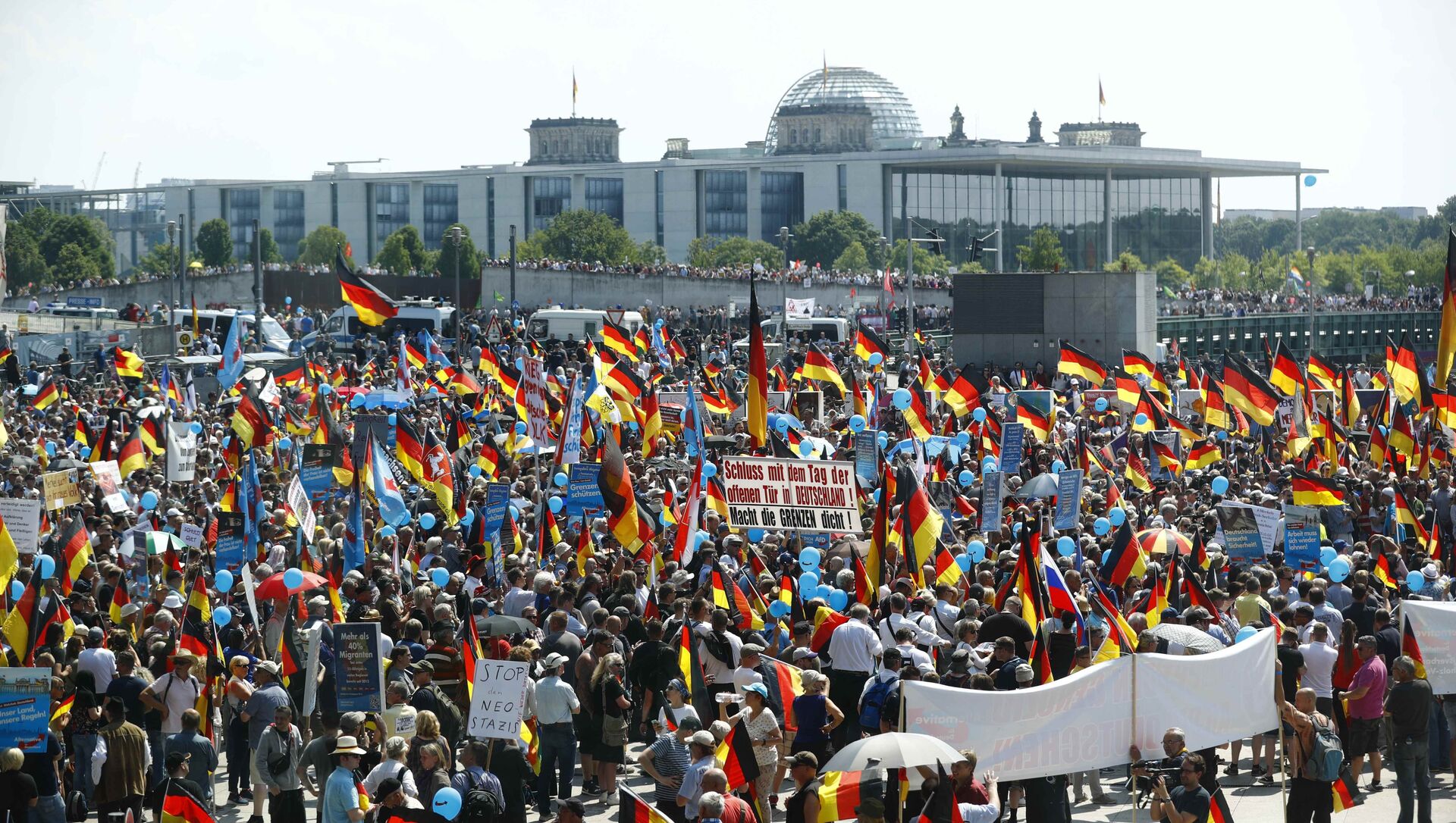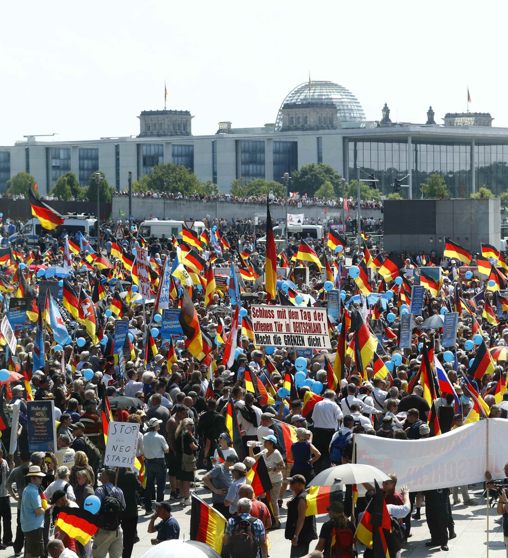 10:00 GMT 27.05.2018 (actualizado: 07:17 GMT 29.05.2024) Los partidarios de la Alternativa para Alemania (AfD) respondieron a la llamada de su partido a marchar por Berlín. Se han convocado protestas contra el evento.