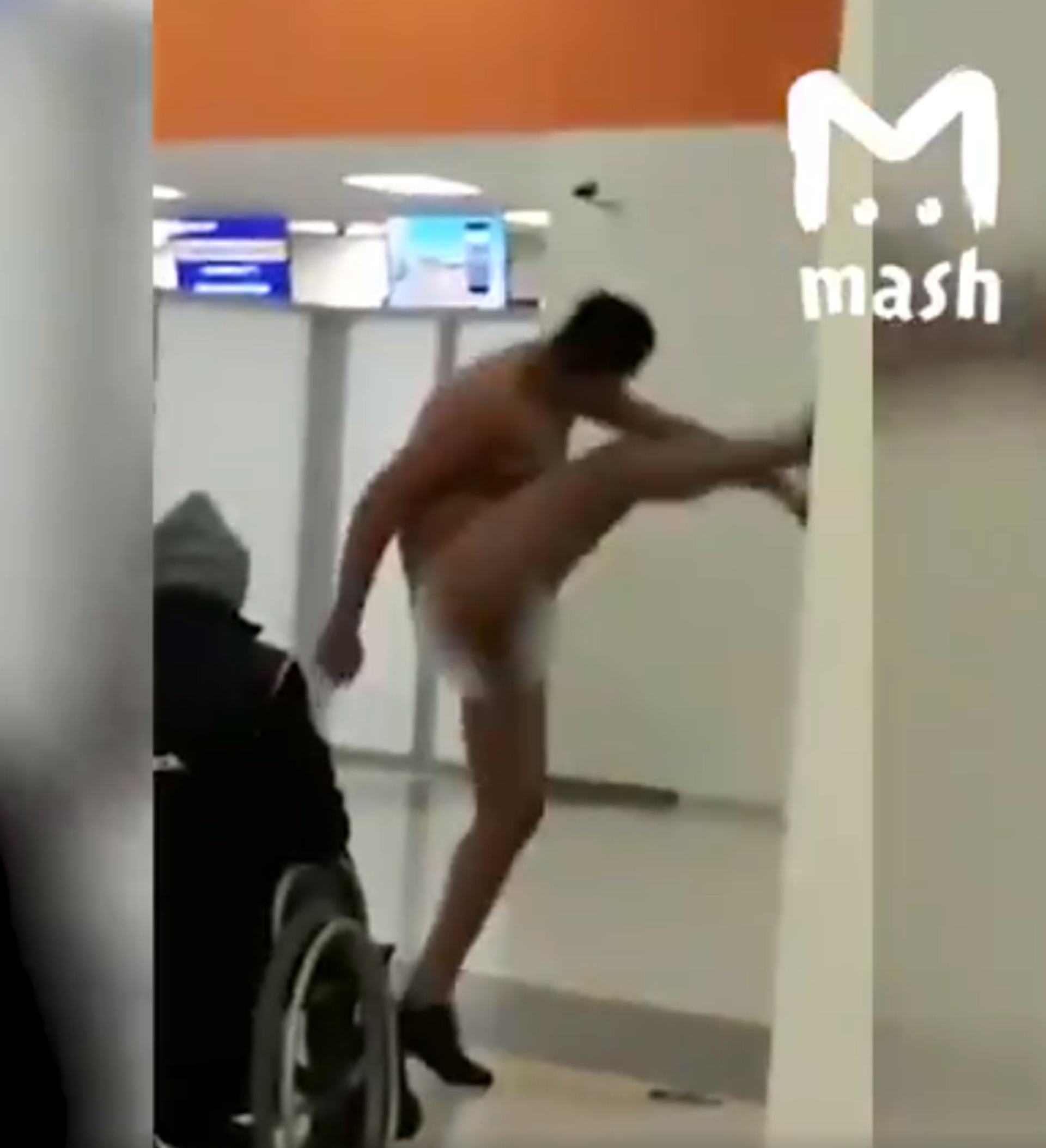 "Un pasajero de México muestra cómo tiene que ser un chequeo completo. Eso es lo que ocurre cuando la bolsa [de droga] se te rompe en el estómago", escribe el canal Mash, insinuando que el hombre trabajaba como 'mula'.