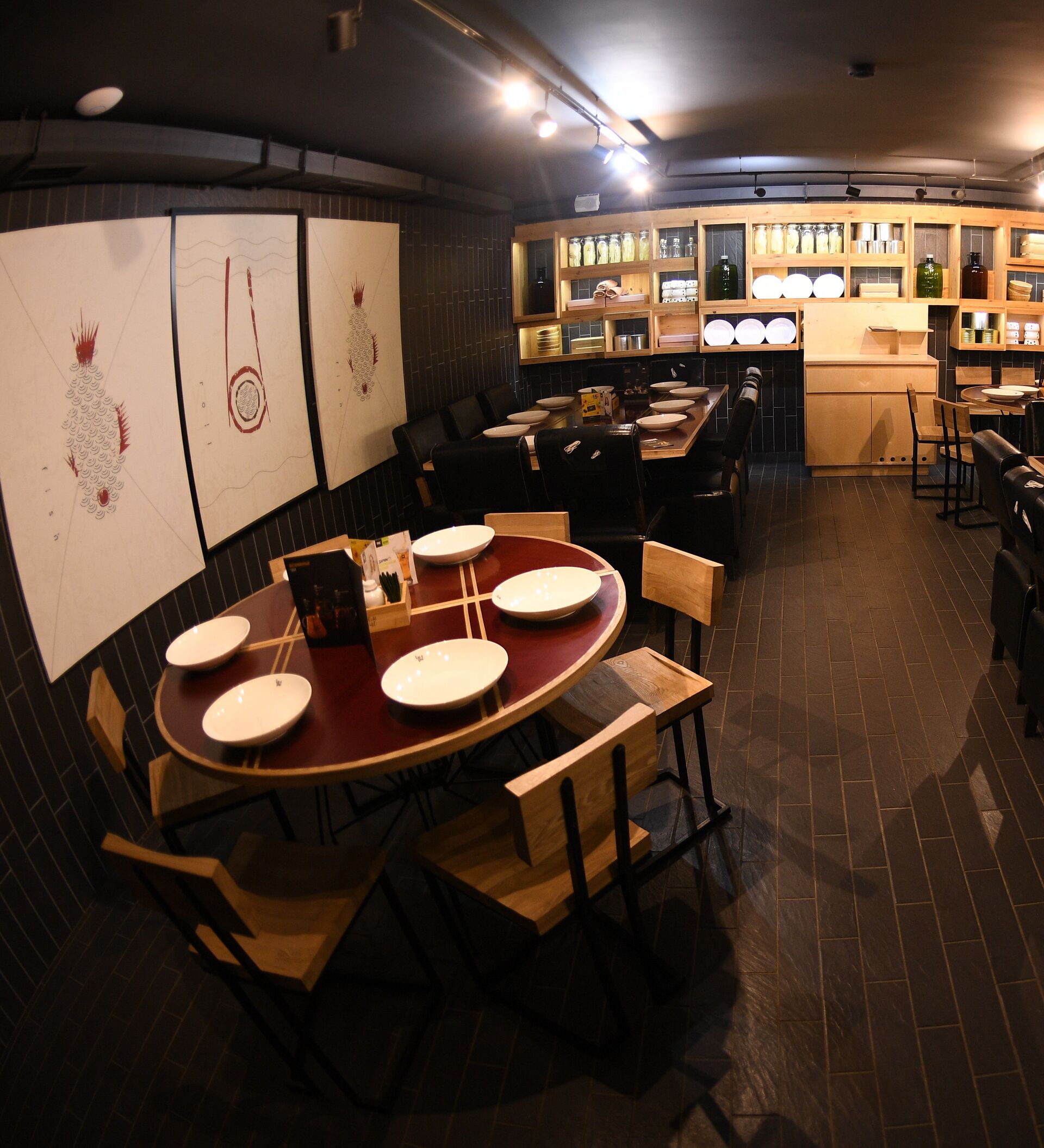 La cocina es muy variada, pero predomina la italiana, representada por casi 20 tipos de pizza. Los cocineros recomiendan probar Derevénskaya, que incluye, además de ingredientes habituales, es decir, masa fina, bacon y mozarrella, productos del tipo pollo ahumado, cebolla frita, patata cocida y salsa kebab. Una pizza puede valer para dos comensales.