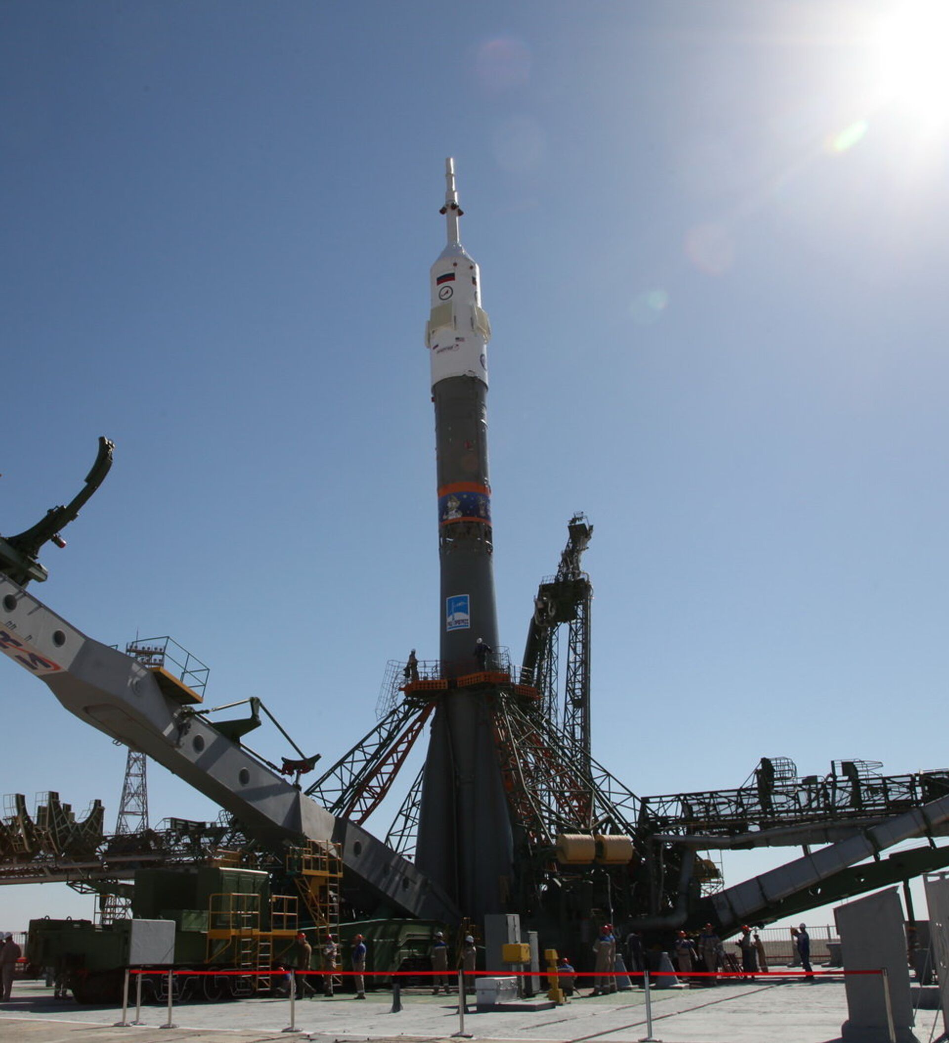 © Foto : RoscosmosEl cohete portador Soyuz-FG, destinado para llevar la misión 56/57 a la EEI, en la plataforma de lanzamiento de Baikonur