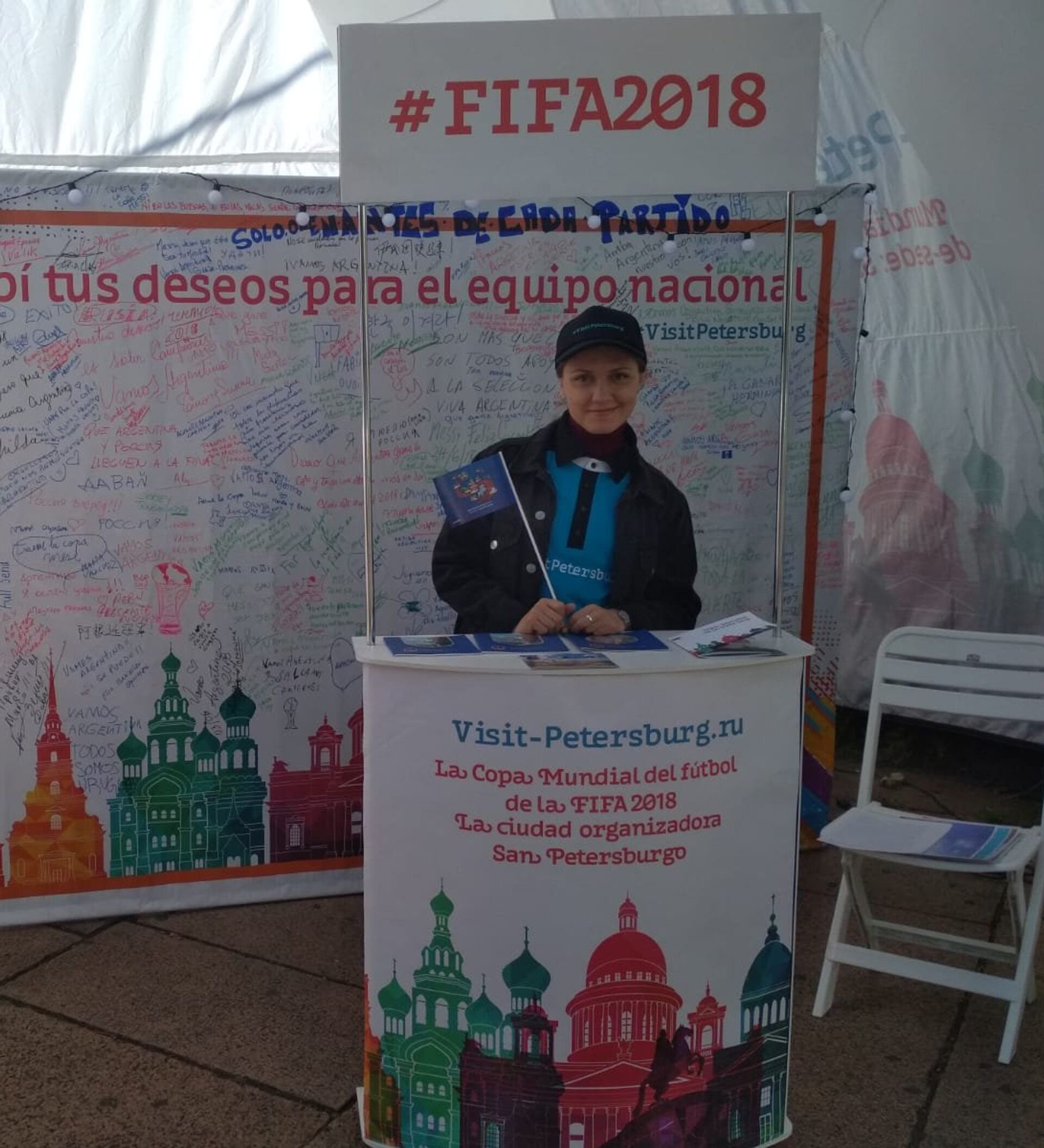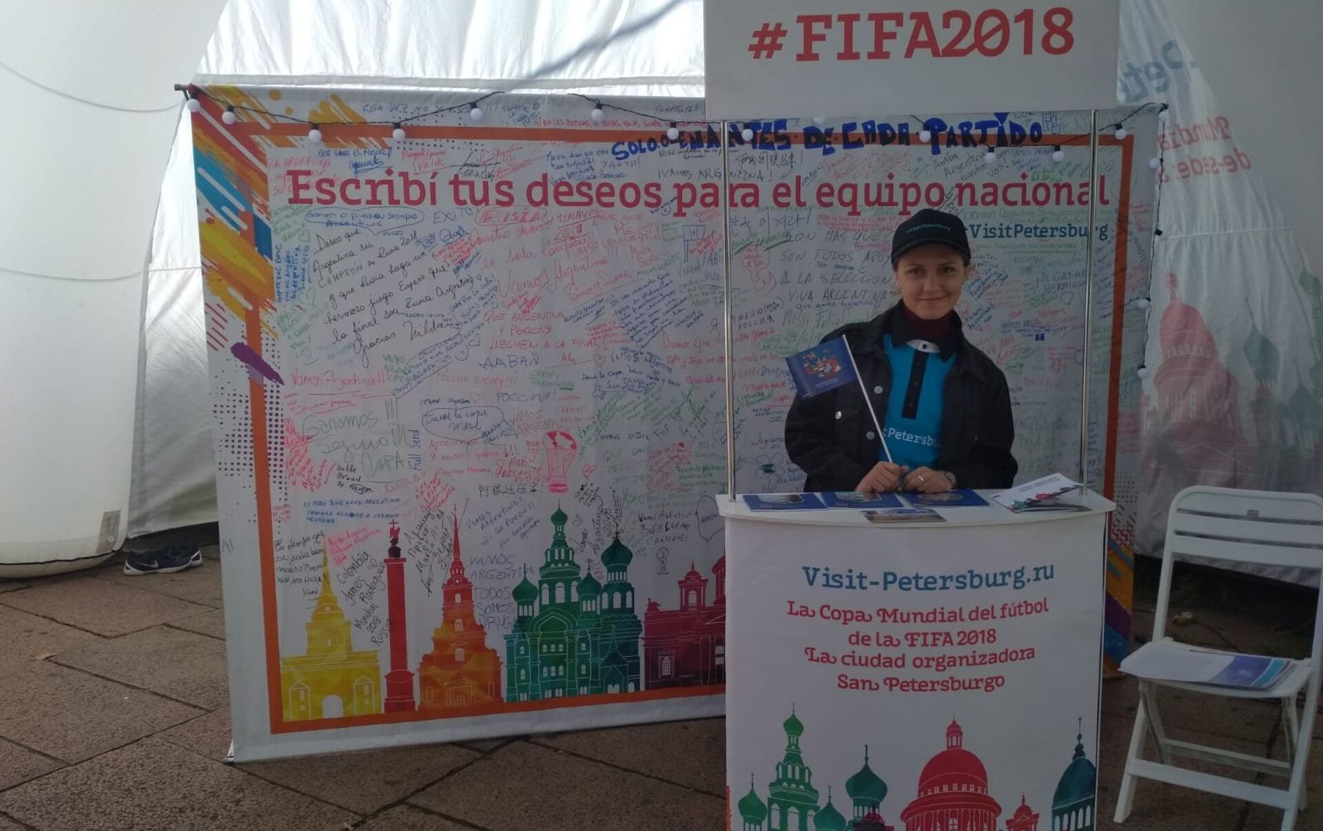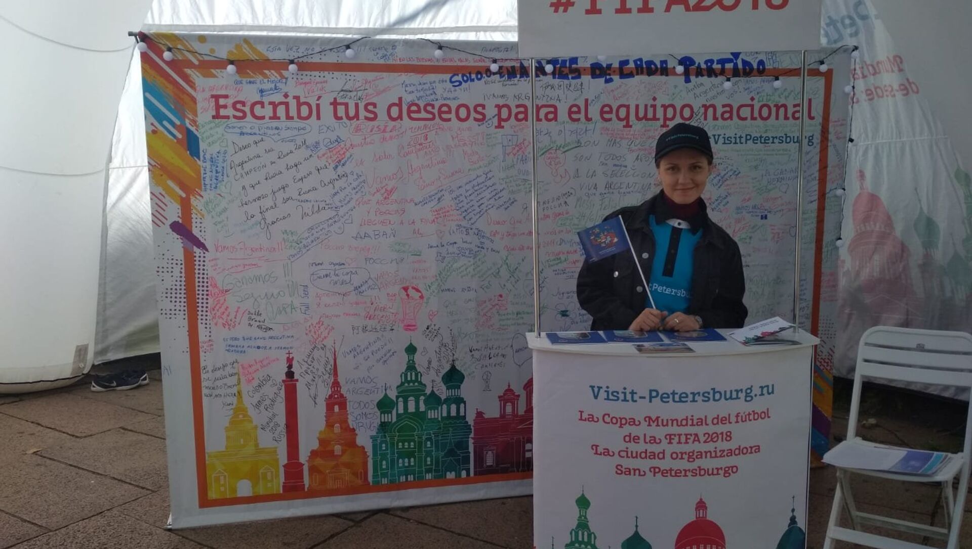 Soledad, madre de dos niños hinchas de fútbol, fue una de las que se acercó al estand a dejar su saludo en el panel y a informarse sobre San Petersburgo. También dejó un mensaje de aliento a la selección uruguaya: