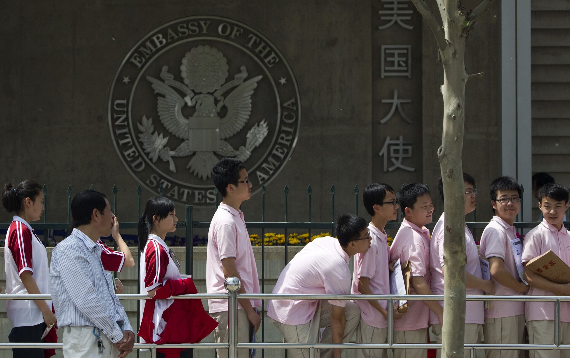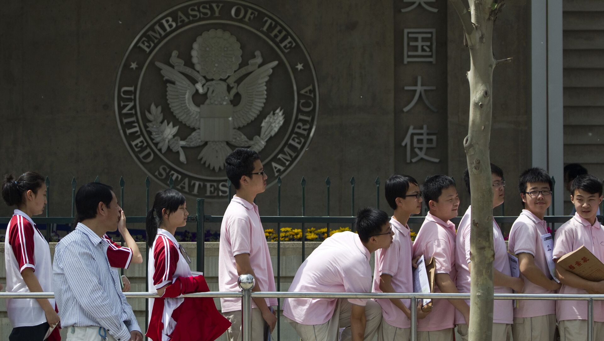 Los estudiantes chinos esperan sus entrevistas para recibir su visa en las afueras de la Embajada de EEUU, en Pekín - Sputnik Mundo
