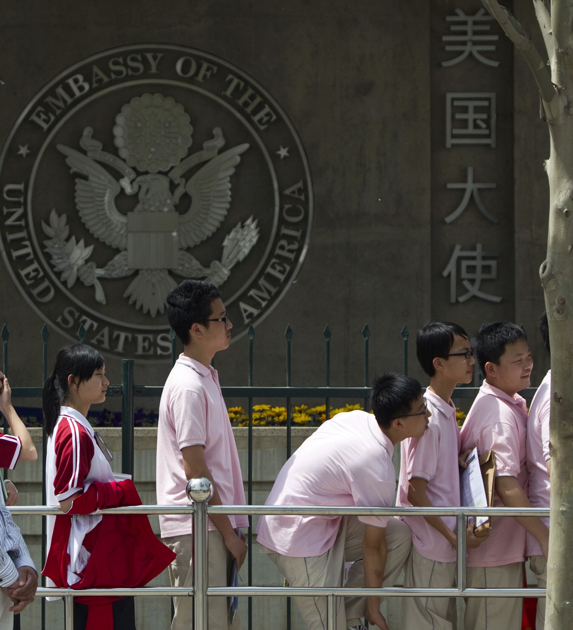 © AP Photo / Alexander F. YuanLos estudiantes chinos esperan sus entrevistas para recibir su visa en las afueras de la Embajada de EEUU, en Pekín