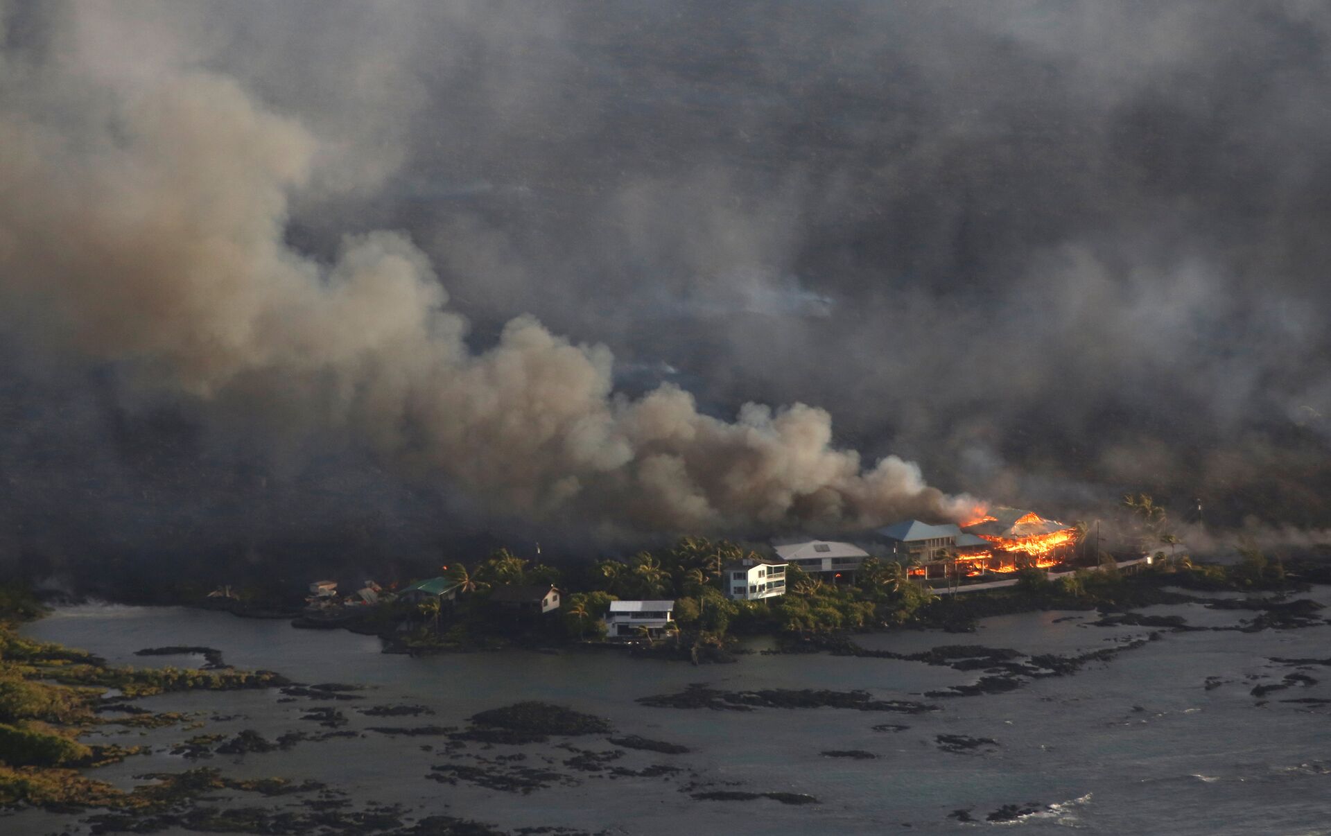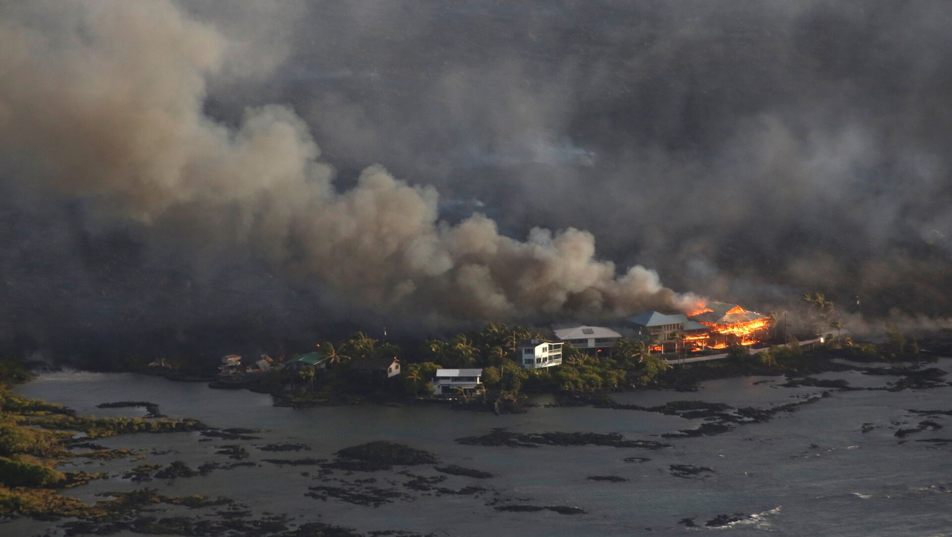 Casas rodeadas de lava durante la erupción del volcán Kilauea en Hawái - Sputnik Mundo