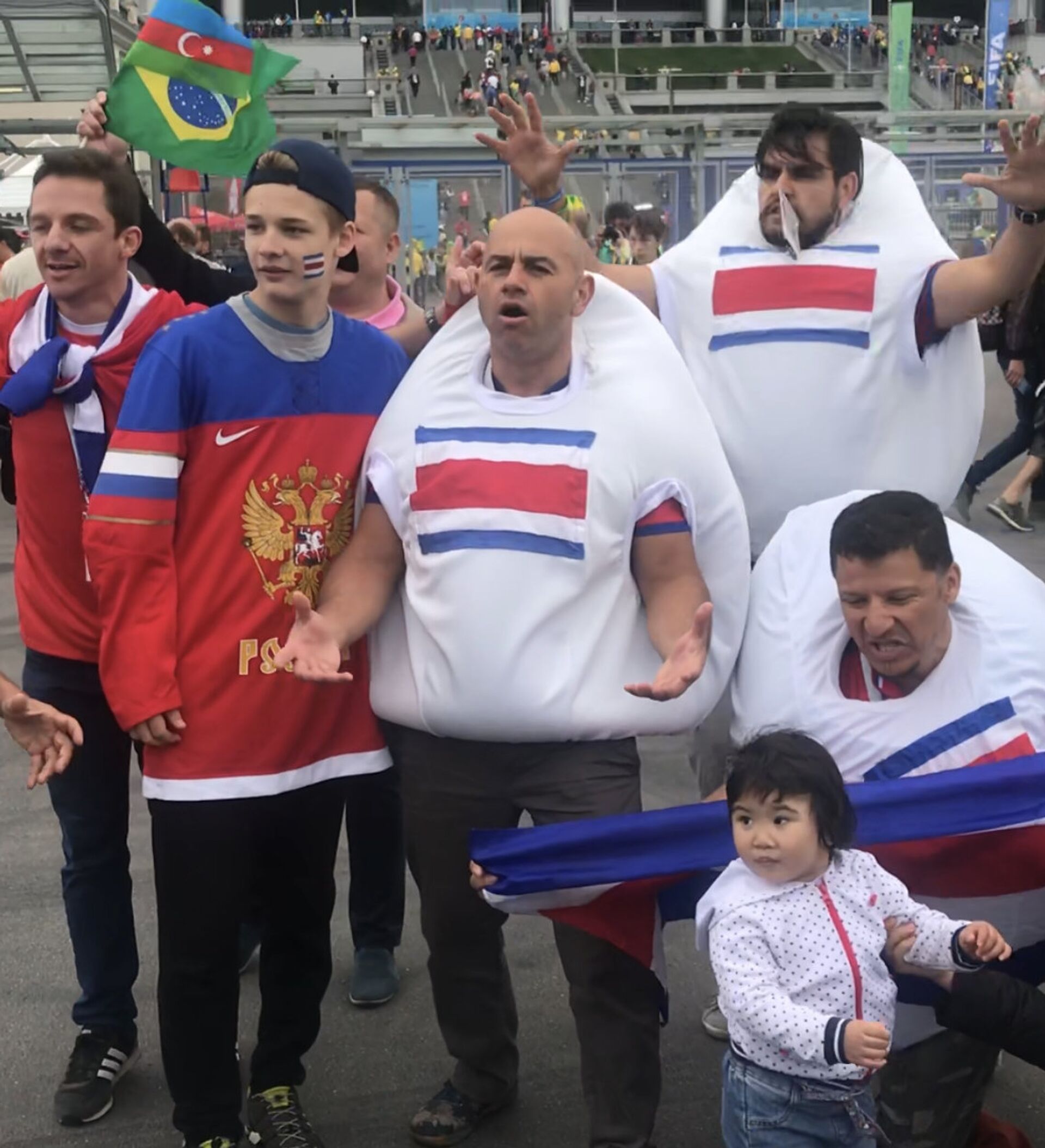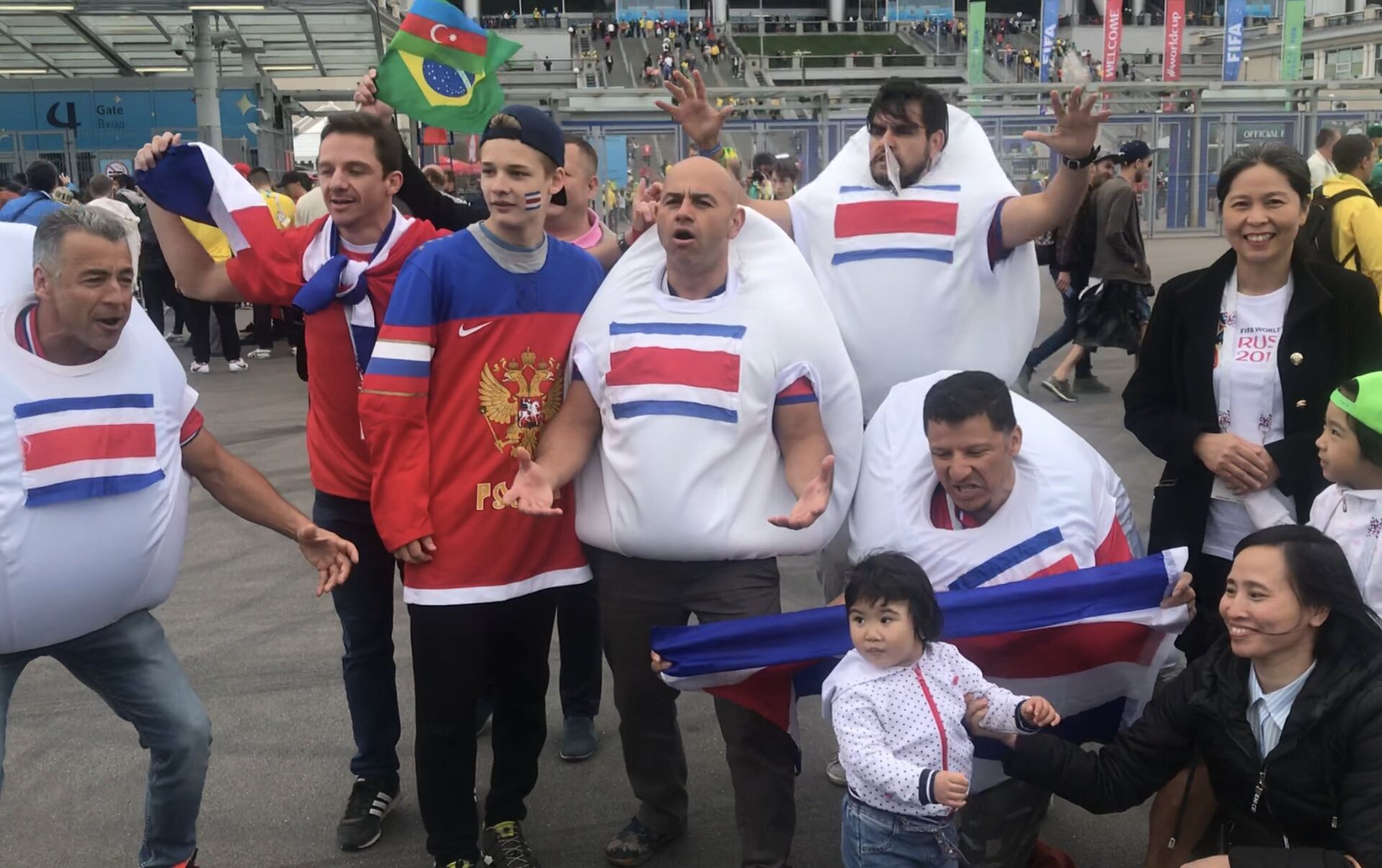 Y lo hicieron de la mejor manera. Bailando, cantando y, en algunos casos, posando con la bandera del equipo rival: la brasileña. Porque los brasileños, al menos antes de que comenzase el partido del 22 de junio contra Costa Rica, no eran los rivales de los 'ticos', sino compañeros de baile a las puertas del estadio. Después del encuentro, en el que la 'canarinha' logró imponerse con dos goles, quizás la cosa cambió.