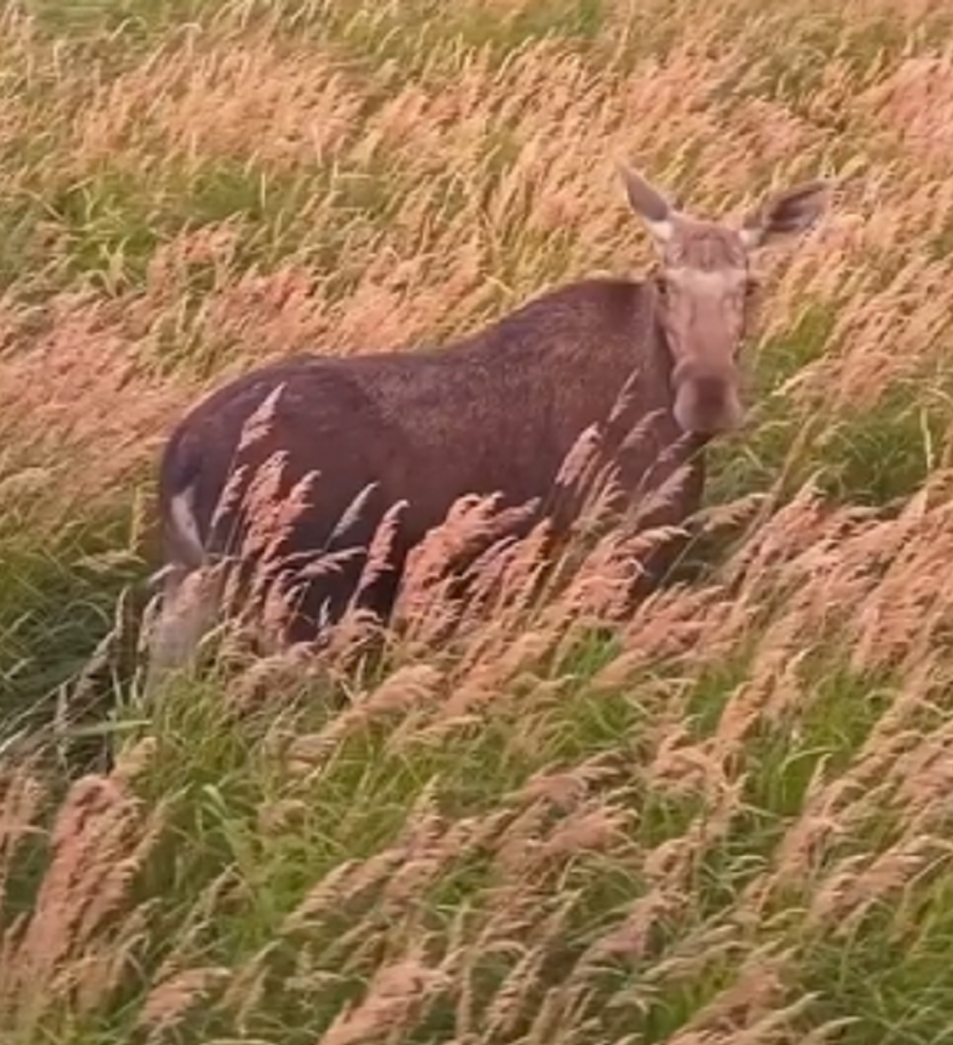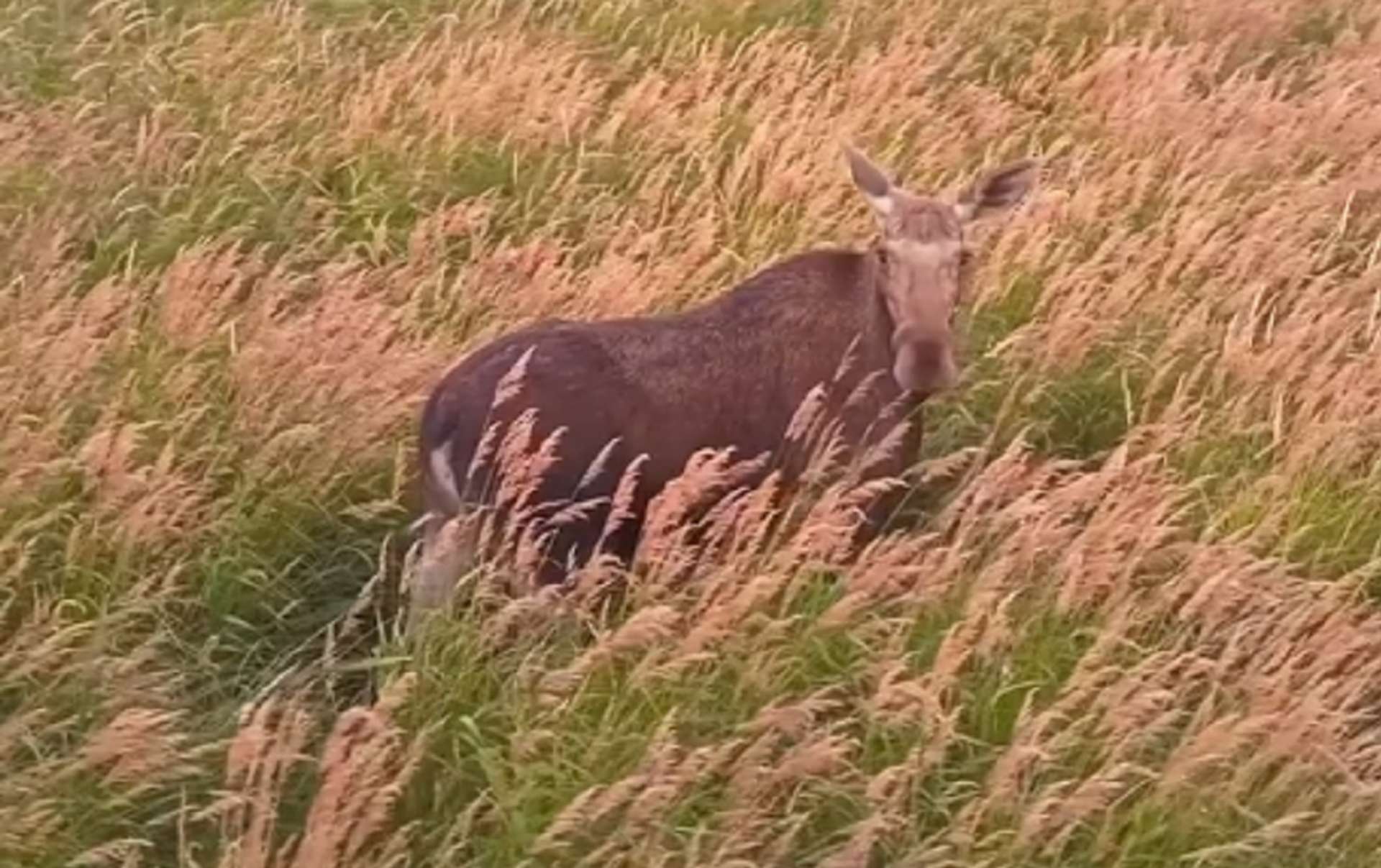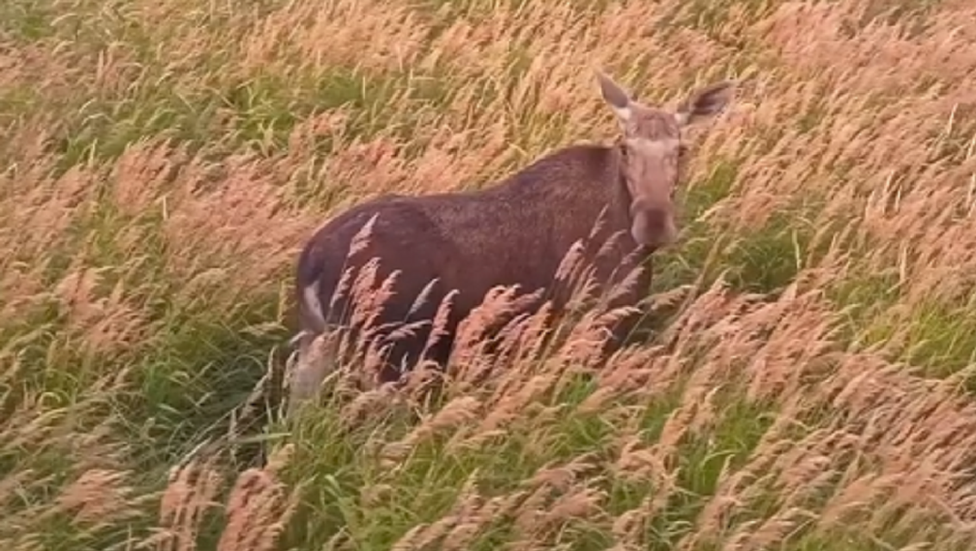 Denís Stein público el vídeo tomado desde un dron en su página de Facebook. Las imágenes muestran a una hembra de alce en medio de un campo de la región de Kaliningrado.