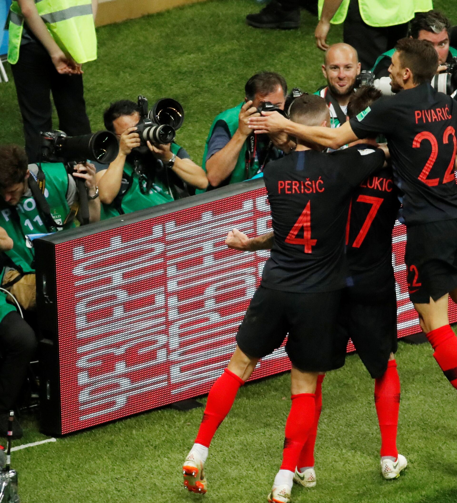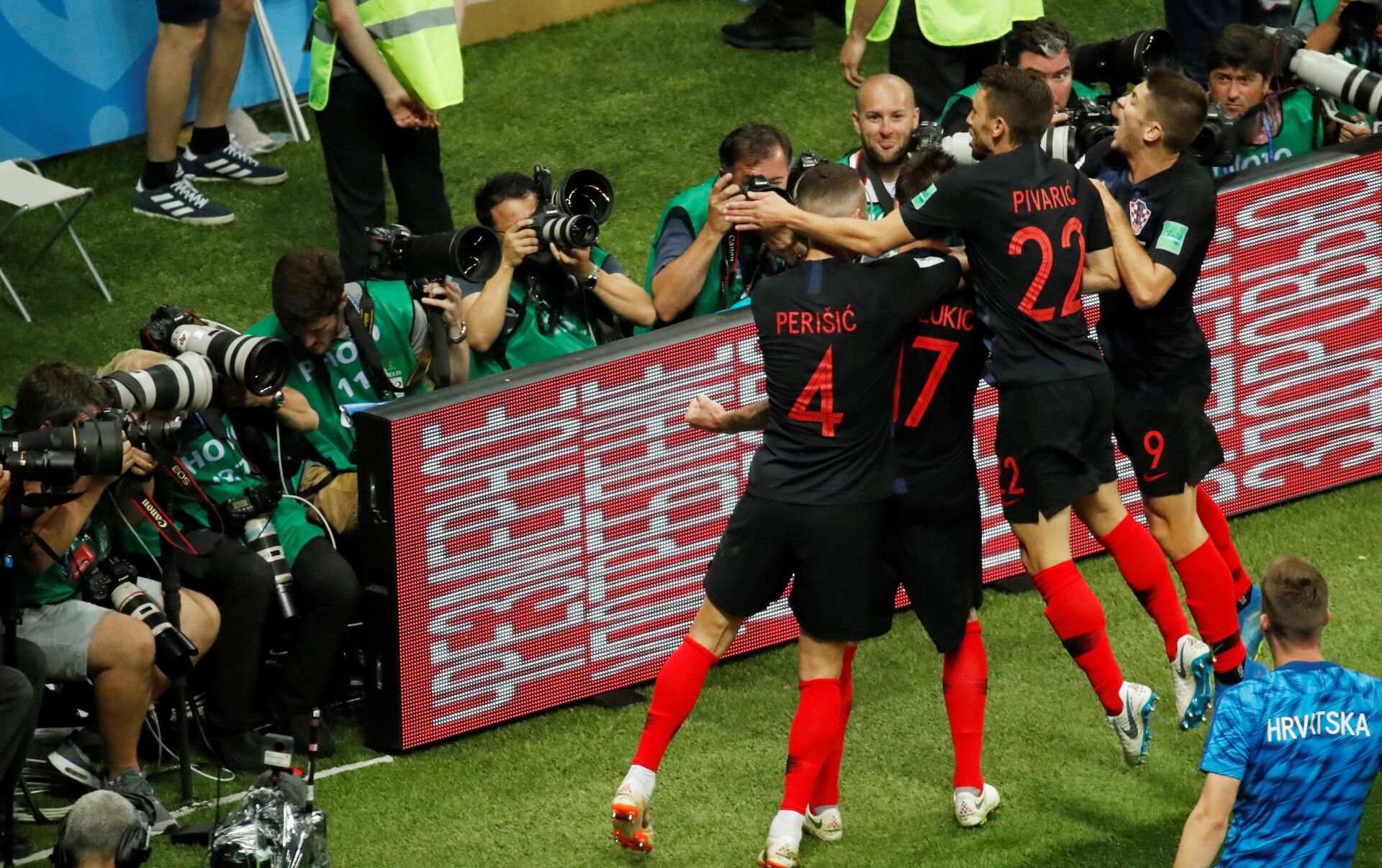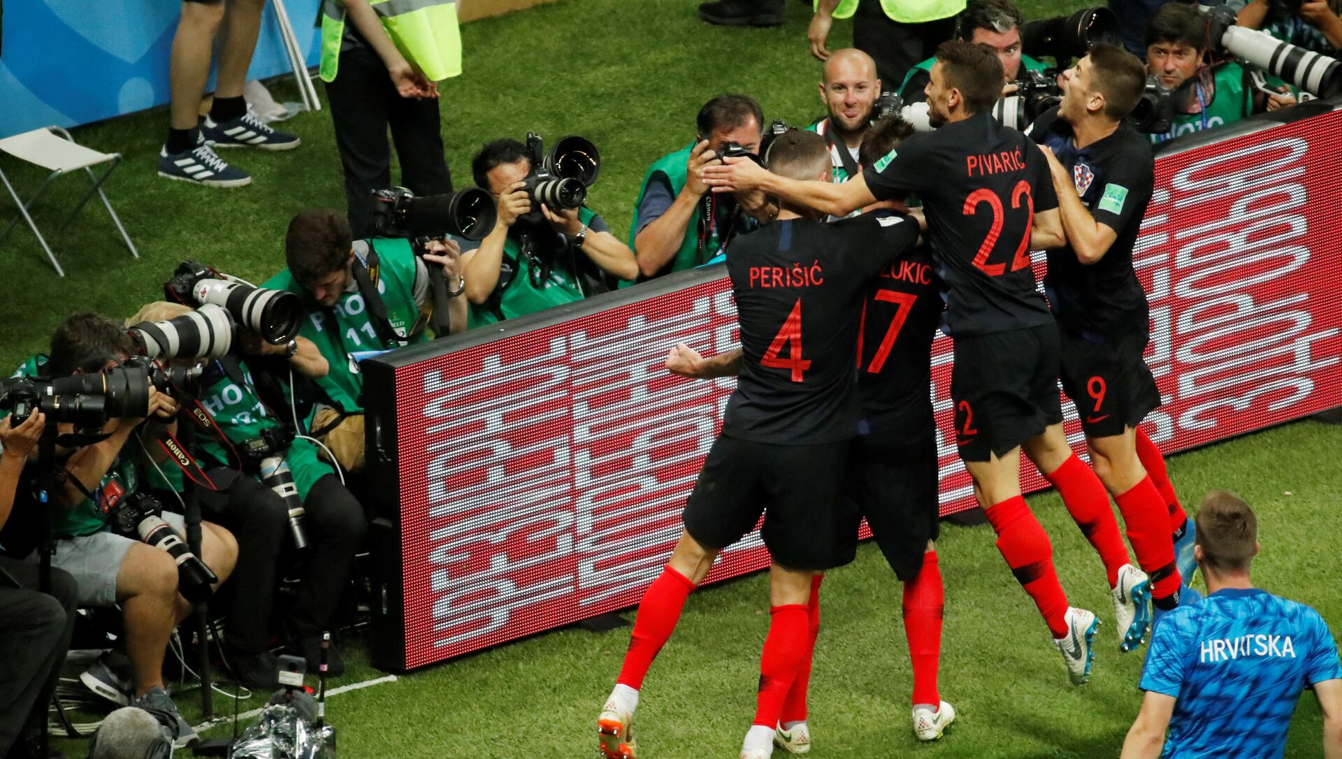 Los Ajedrezados —que venían perdiendo por 0-1 ante el combinado inglés tras la primera mitad del encuentro— lograron empatar el partido con el gol de Iván Perisic (68), a lo que siguió el tanto de Mario Mandzukic (109) quien aseguró a su equipo el pase —primero en la historia del combinado balcánico— a la final del Mundial.