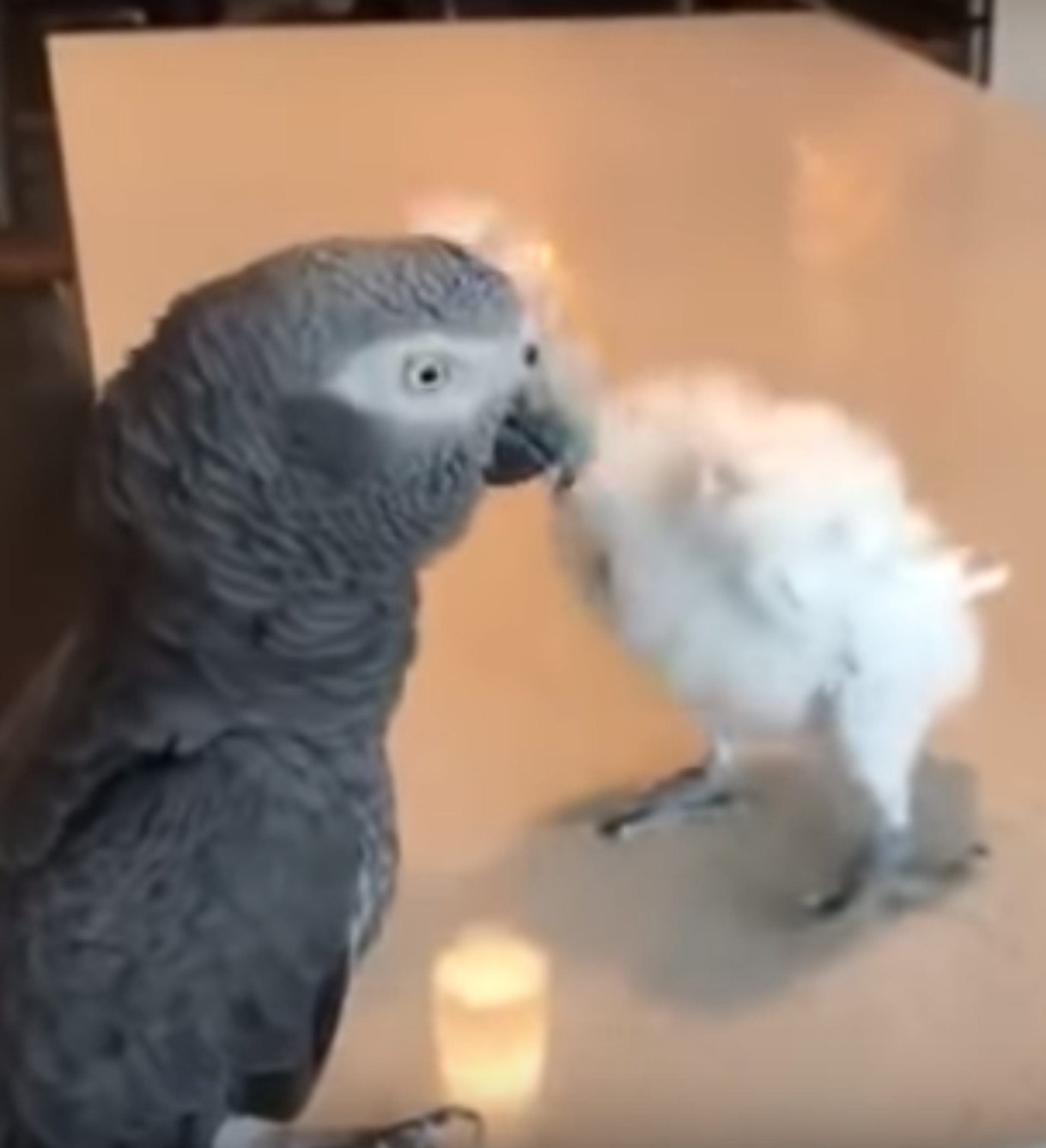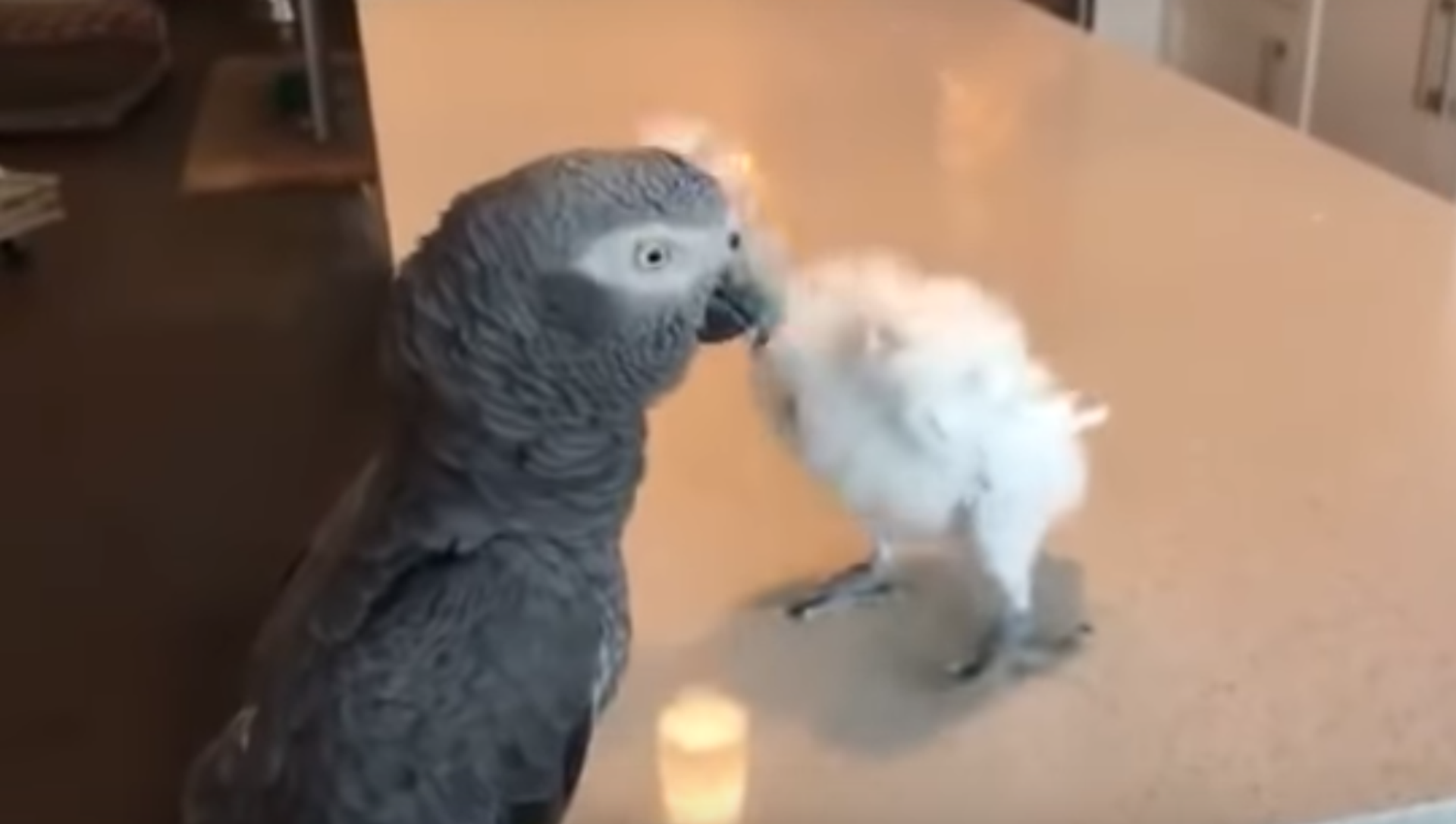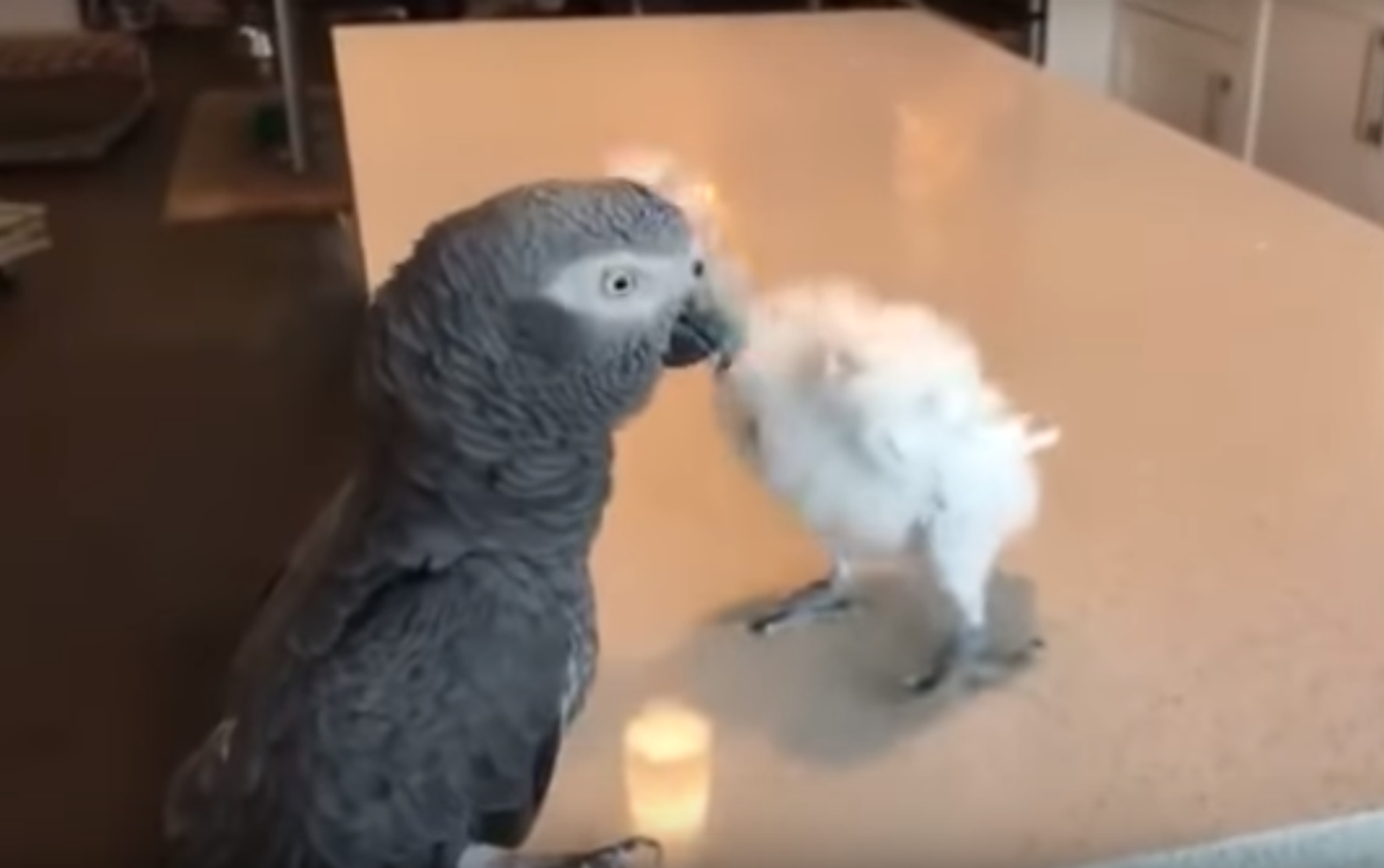 En esta grabación se ve cómo un papagayo se mueve en la mesa de una cocina al ritmo de la música reproducida por un ordenador.