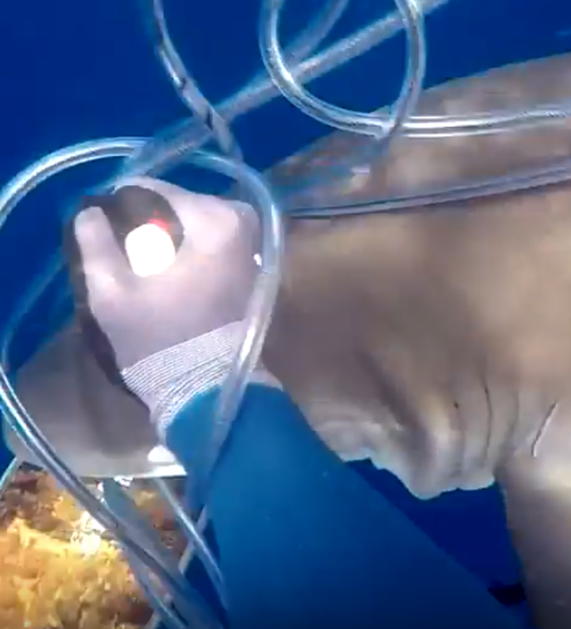 El ataque, que duró más de dos minutos, mantuvo en vilo al hombre, que vio cómo se acercaba a él un escualo de galápagos justo cuando capturaba con un arpón un atún de aleta amarilla. El buzo primero golpea con el puño el morro del animal. Acto seguido llegan refuerzos y se le une otro tiburón. Es entonces cuando el buzo saca un machete y empieza a defenderse cada vez que se acercan a él.
