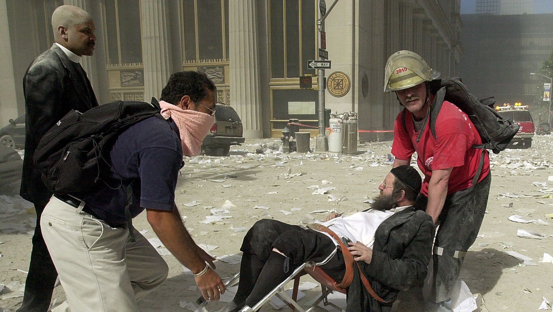 Los restos de más de 1.000 víctimas del atentado en Nueva York todavía no han sido identificados. En los últimos cinco años, los expertos solo lograron identificar a cinco víctimas. En la foto: un bombero en el lugar del atentado contra el World Trade Center.